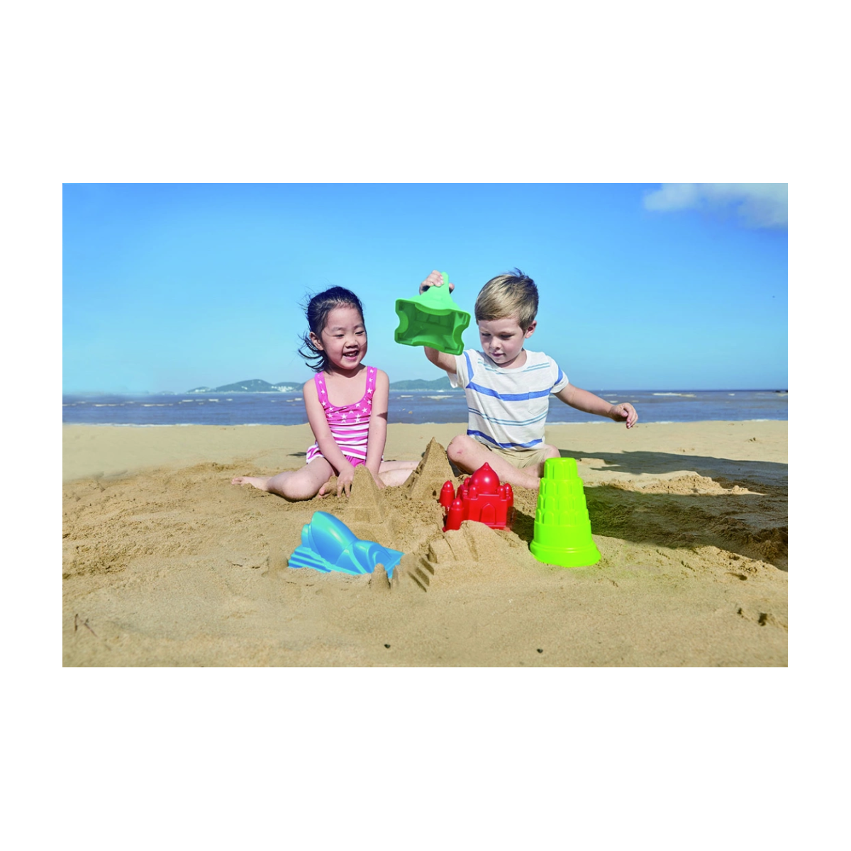 Es un juguete sencillo pero muy creativo que invita a construir, explorar y disfrutar del verano mientras se recrea una de las siete maravillas del mundo con arena.