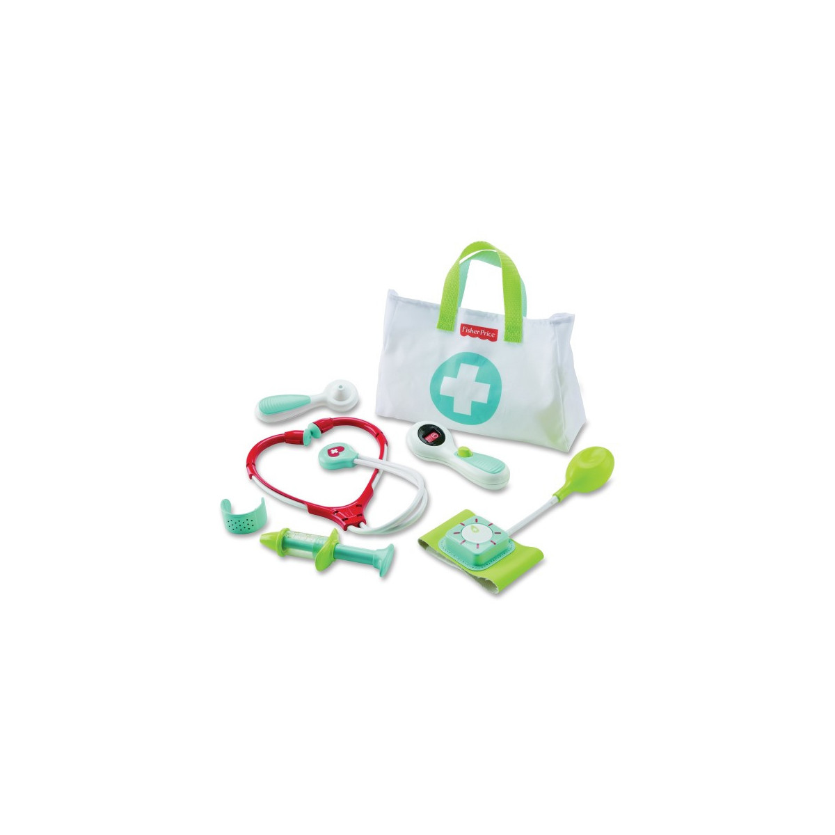 Este maletín de fisher price contiene todo lo necesario para ser un buen médico. Contiene 7 piezas y una bolsita para guardarlo todo.