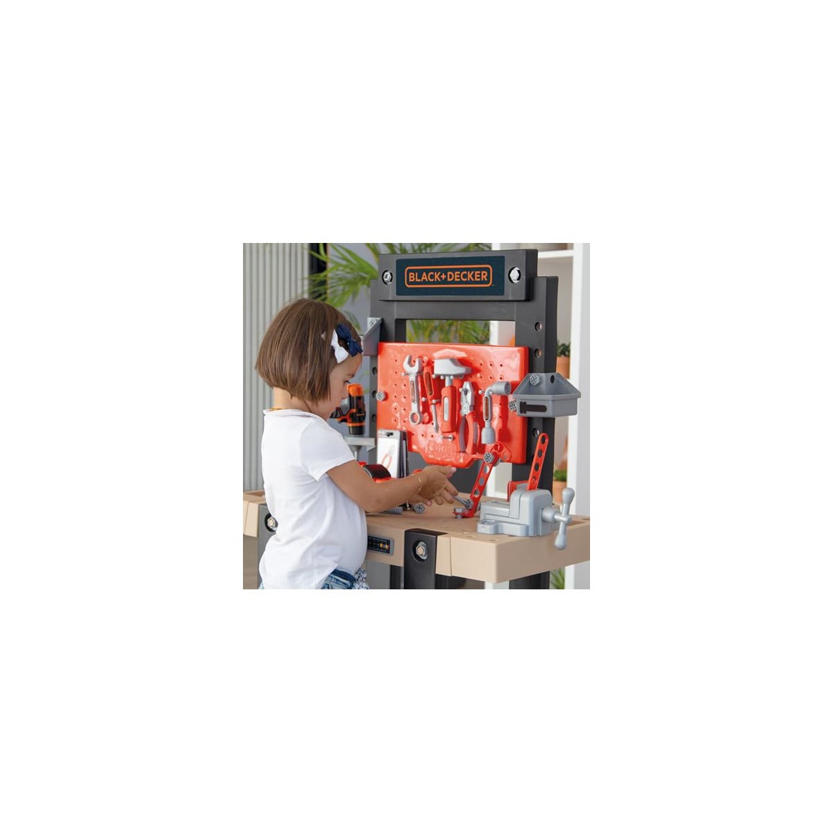 Incluye: 20 tornillos, 18 tuercas, 1 sierra, 1 martillo, 1 llave inglesa, 1 destornillador, 1 llave de tubo, 1 alicates, 1 gato, 1 regla mecánica, 1 juego de construcción, 1 regla y 1 taladro