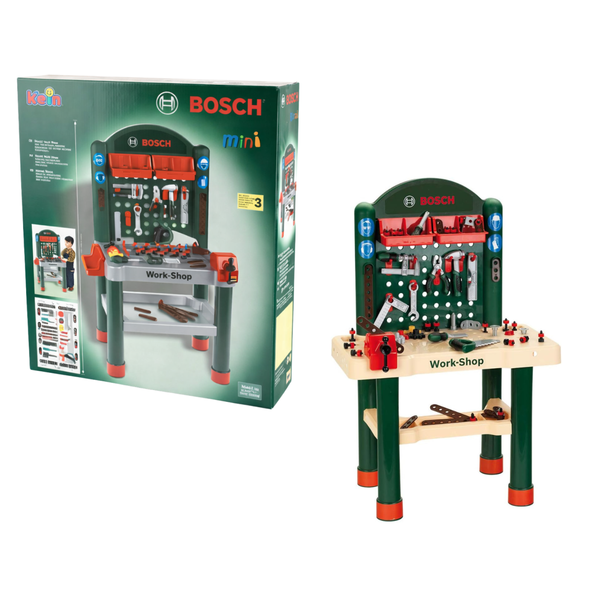 La calidad de Theo Klein, junto a la colaboración con Bosch, se nota en cada detalle de este taller infantil, desde la superficie de trabajo hasta las herramientas incluidas. Incorpora una gran variedad de accesorios como martillo, destornillador, sierra, alicates y tornillos, pensados para que el juego sea completo, seguro y muy entretenido.