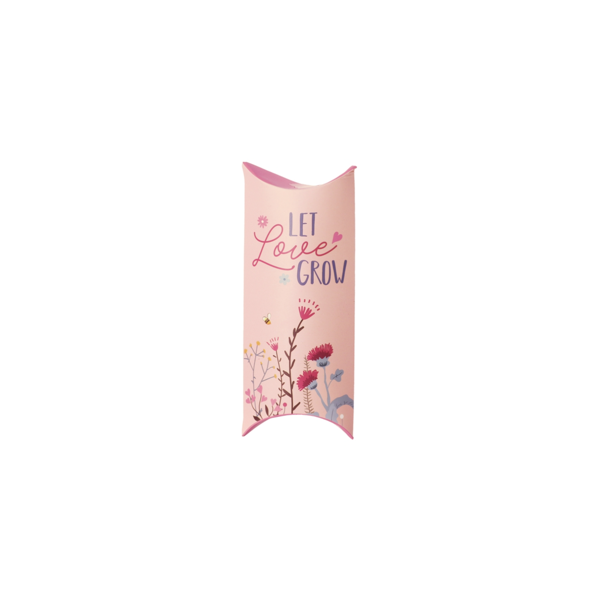 Esta caja con semillas de flores surtidas es una propuesta original y educativa para niños y niñas que disfrutan de la naturaleza y las manualidades al aire libre. Incluye un sobre con una variada selección de semillas y un disco de tierra compactada, todo presentado en un práctico y bonito empaque con forma de almohada.