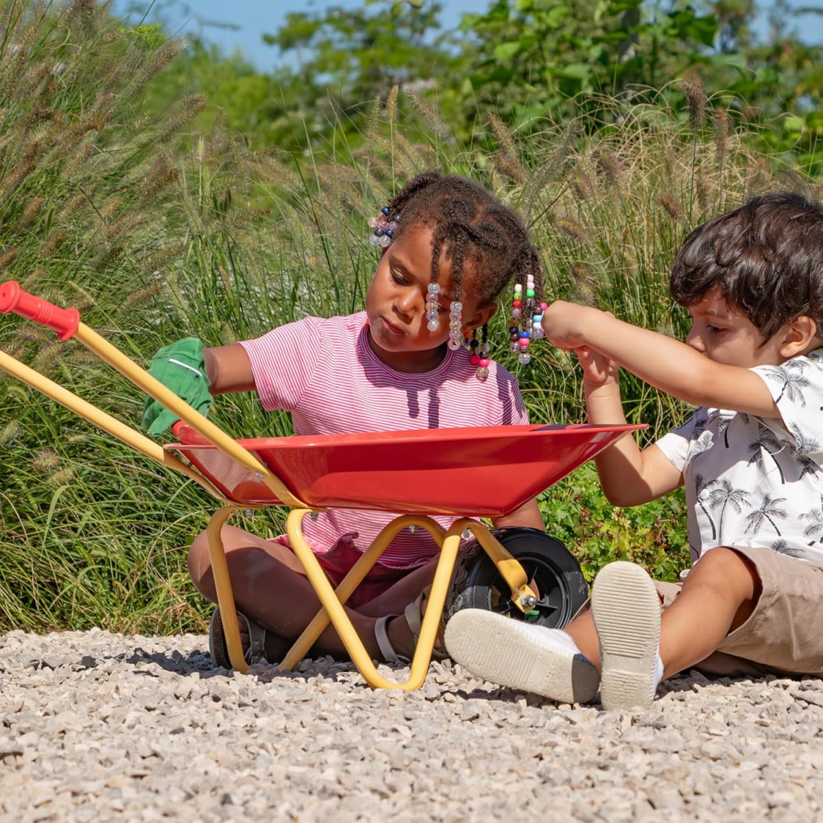 La Carretilla De Metal Roja es perfecta para desarrollar la coordinación, la motricidad y el juego simbólico, permitiendo a los más pequeños aprender mientras se divierten.