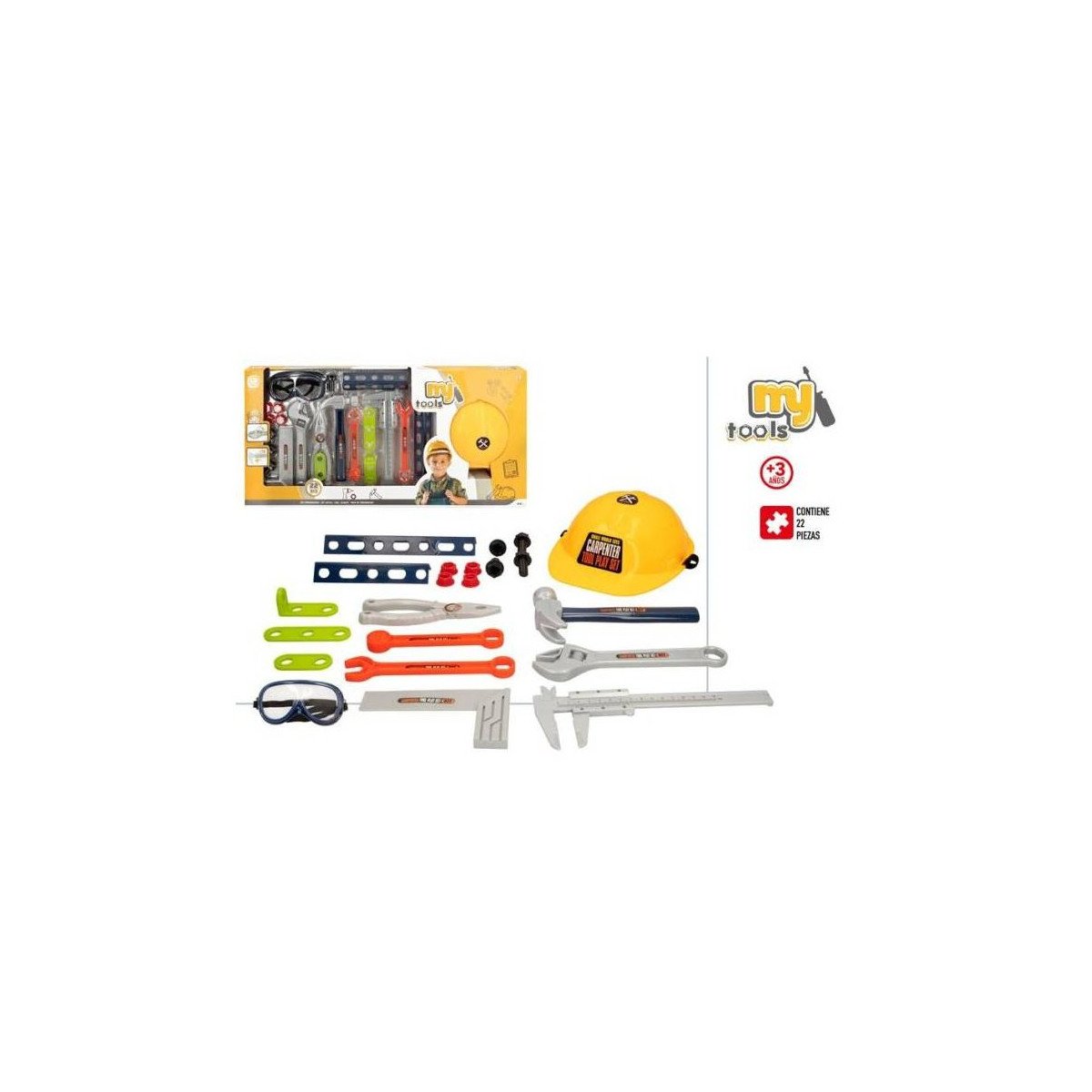 El set de herramientas de My Tools incluye todo lo necesario para poner en práctica tus dotes de manitas. Colócate el casco y las gafas y estamos listos para trabajar. En el set encontrarás 22 piezas, como una llave inglesa, una escuadra, tronillos y tuercas, etc. Además es una buena manera de desarrollar la motricidad.