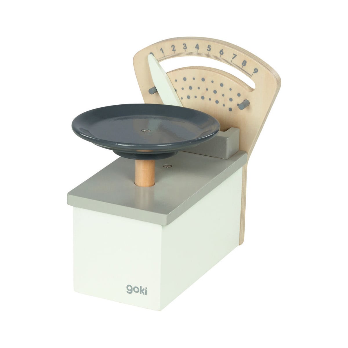 Con la balanza de madera tu peque podrá pesar sus productos colocándolos sobre la base. Al ir añadiendo productos verá como se mueve la aguja del peso.