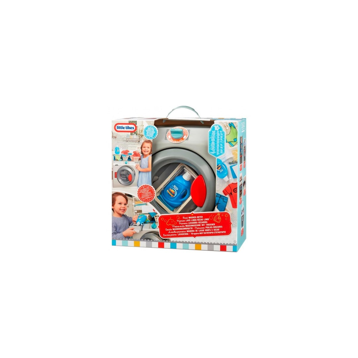 Mi Primera Lavadora Y Secadora de Little Tikes es un juguete diseñado para que los más pequeños imiten las tareas del hogar de manera divertida y educativa. Este set de juego, con un diseño moderno y realista, permite a los niños simular el proceso de lavado y secado de la ropa, fomentando el juego de roles y el desarrollo de habilidades sociales. Incluye características interactivas como un tambor giratorio, un cajón deslizante para el detergente y una mesa para doblar la ropa. Además, emite sonidos realistas que replican los diales giratorios, el tambor en movimiento y los pitidos de cambio de ciclo, enriqueciendo la experiencia de juego. Este juguete no solo entretiene, sino que también ayuda a los niños a comprender la importancia de las responsabilidades domésticas desde una edad temprana.