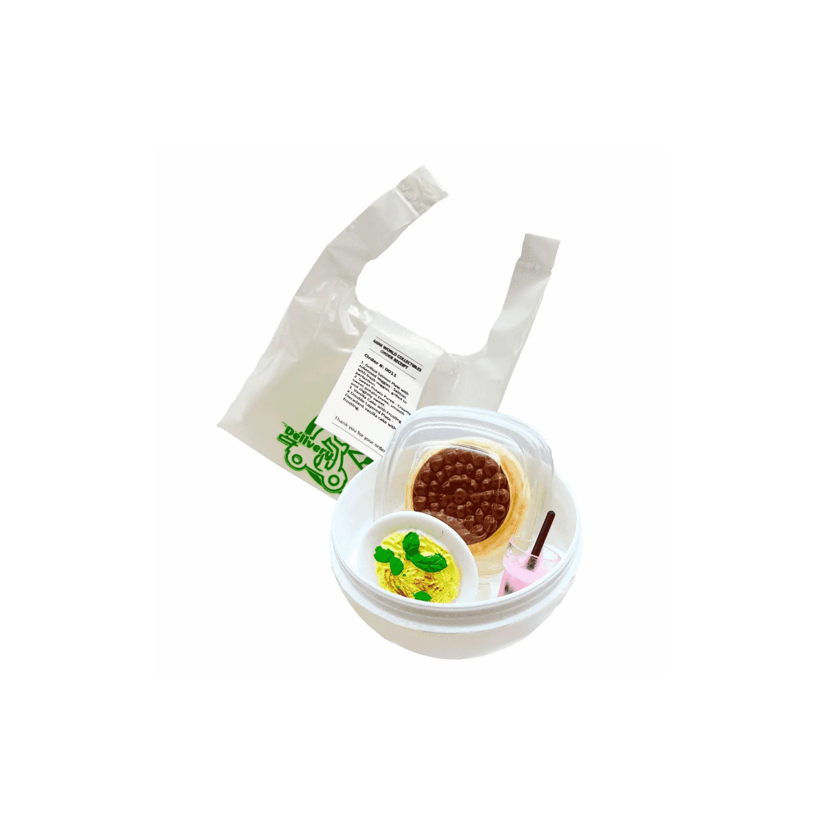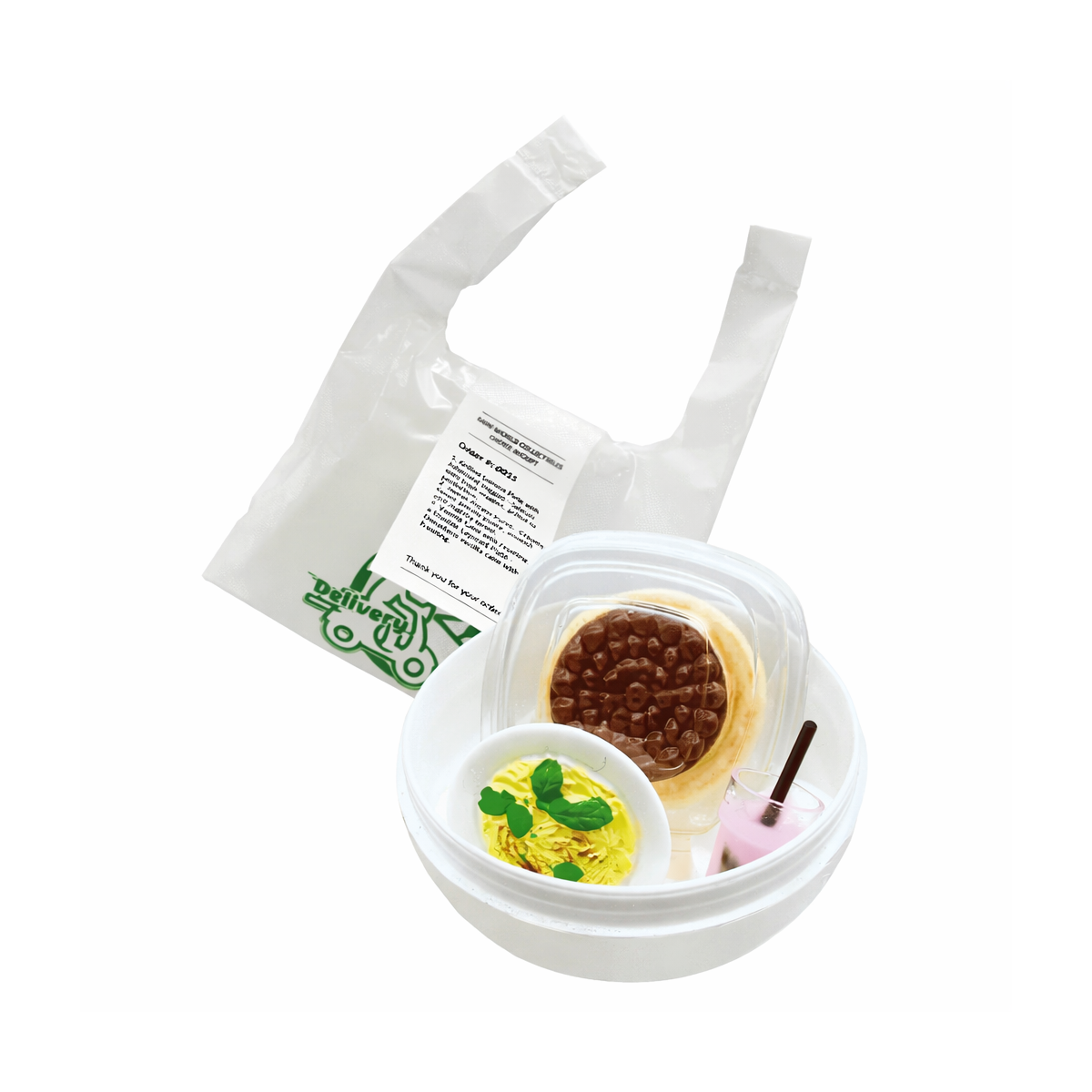El set Mini World Delivery es una propuesta divertida y original que encantará a quienes disfrutan con los juegos de miniaturas y las sorpresas. Cada cápsula incluye pequeños accesorios inspirados en el mundo de la comida a domicilio, con detalles cuidados que hacen que cada pieza sea especial.