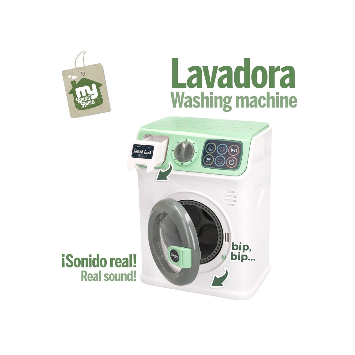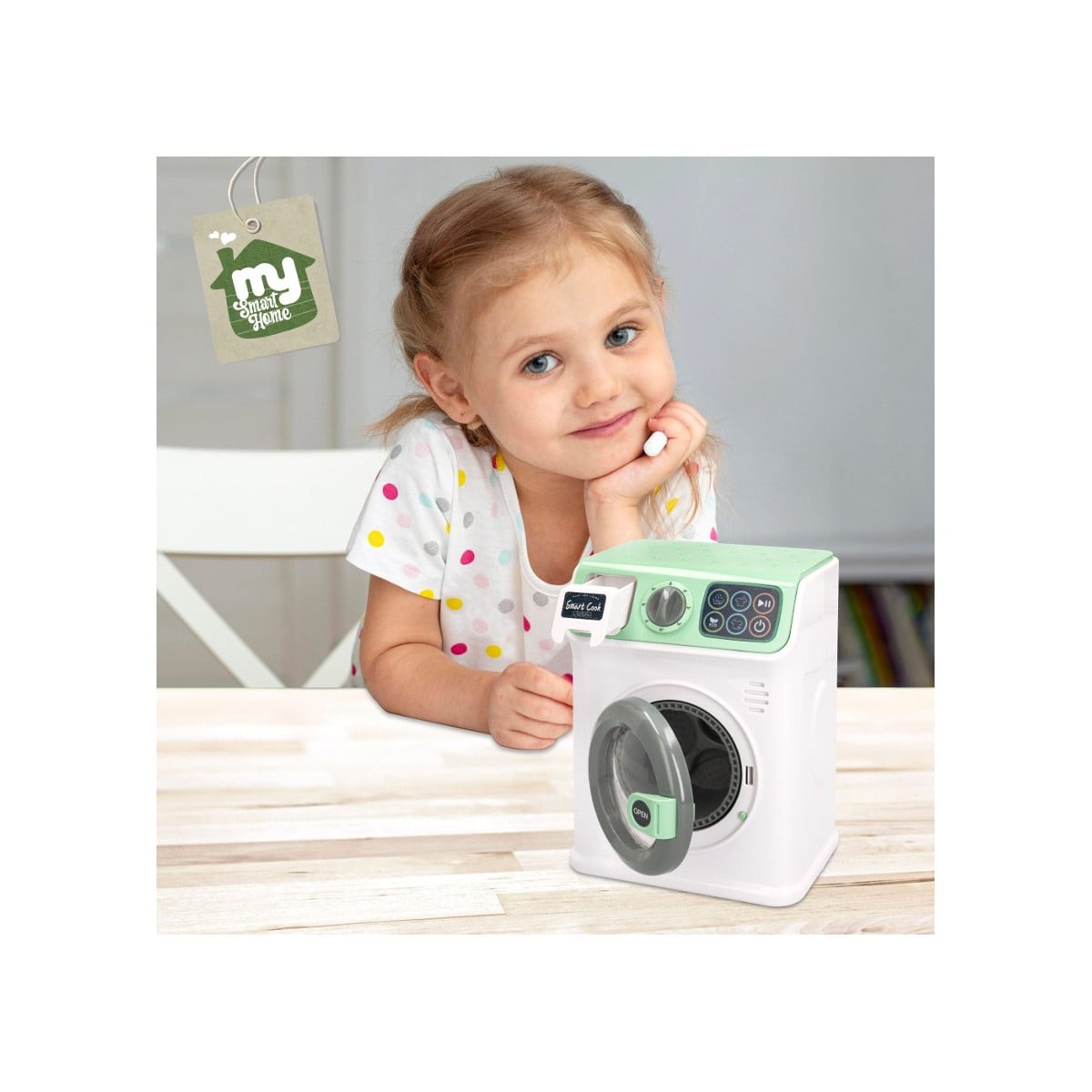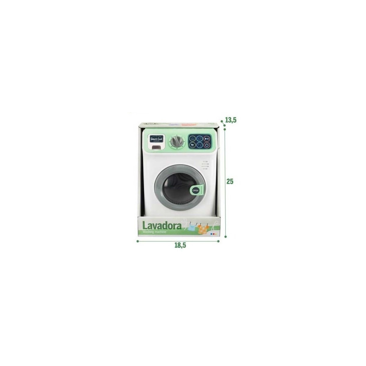 - Elige el modo de lavado dependiendo de los tejidos que quieras limpiar y dale al encendido para que la lavadora se ponga en marcha. Es un juguete simbólico que favorece la adquisición de hábitos domésticos.