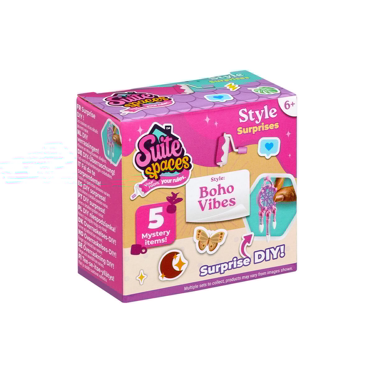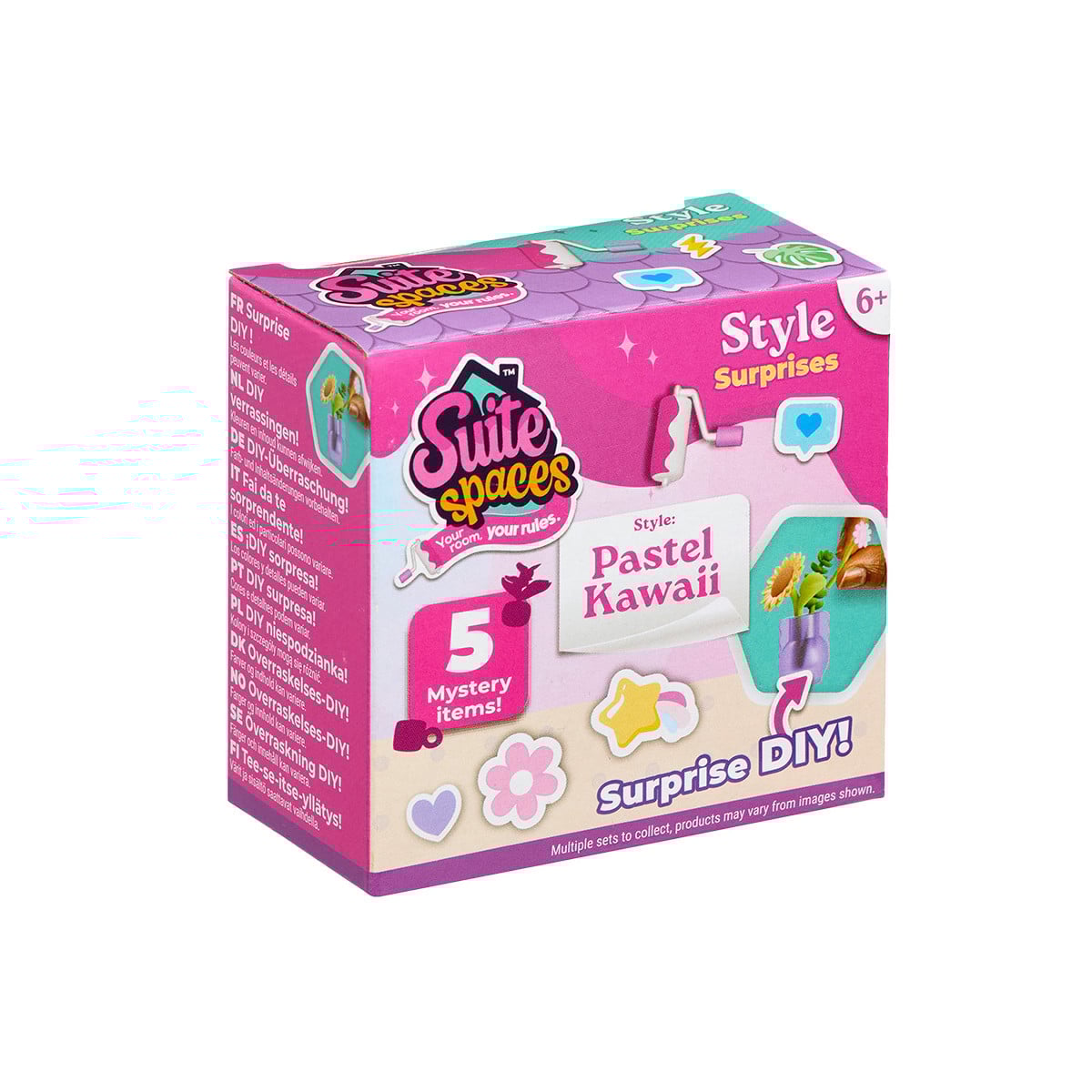 Descubre la caja sorpresa de Suite Spaces con 5 accesorios decorativos misteriosos para crear mini habitaciones llenas de estilo. Colecciona todos los diseños y deja volar la imaginación.