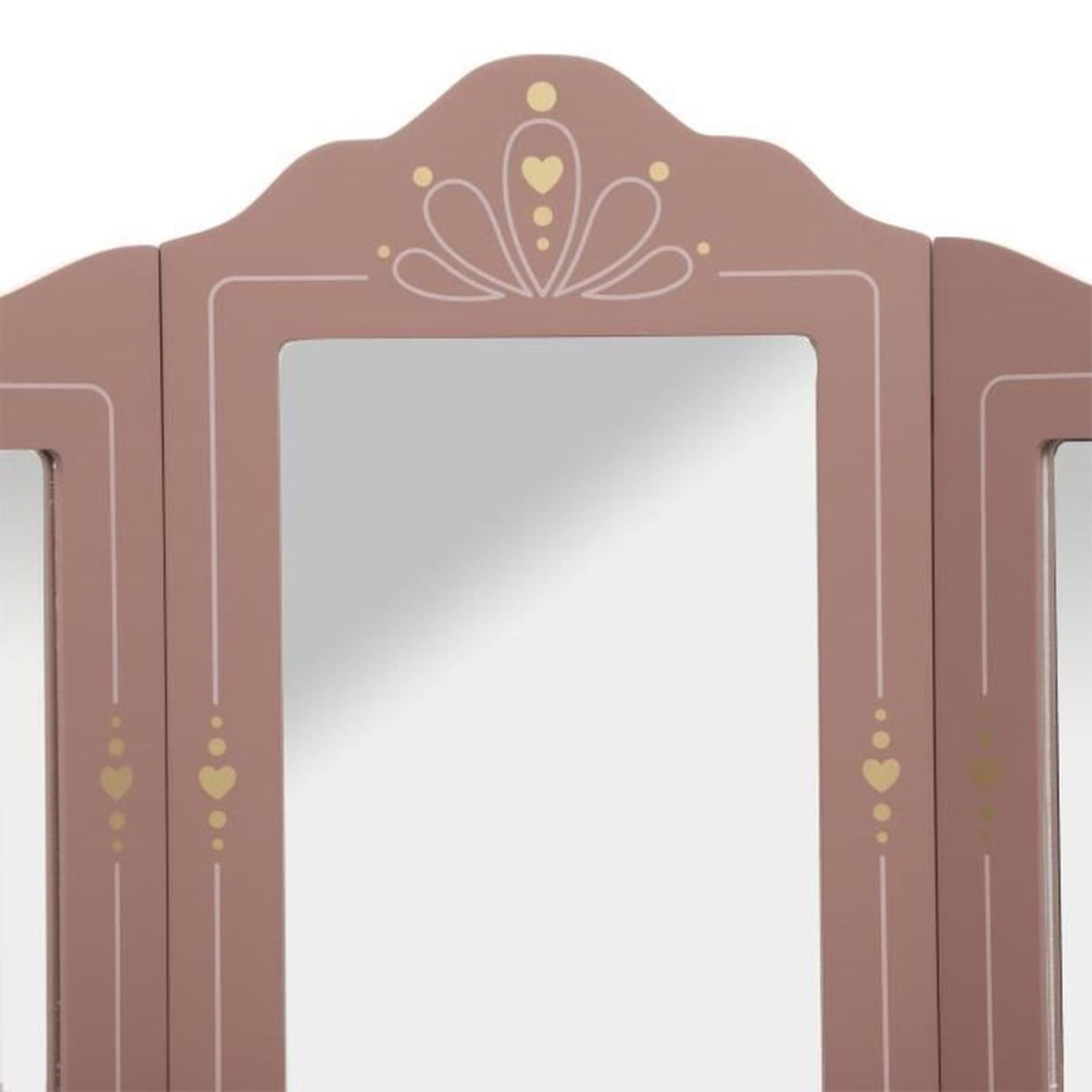 Cuenta con tres espejos que aportan un diseño muy atractivo y permiten a los peques verse mientras juegan, además de cajones de almacenamiento perfectos para guardar joyitas, accesorios o pequeños objetos. Todo ello fomenta el juego simbólico y la autonomía, siguiendo una filosofía inspirada en el método Montessori.