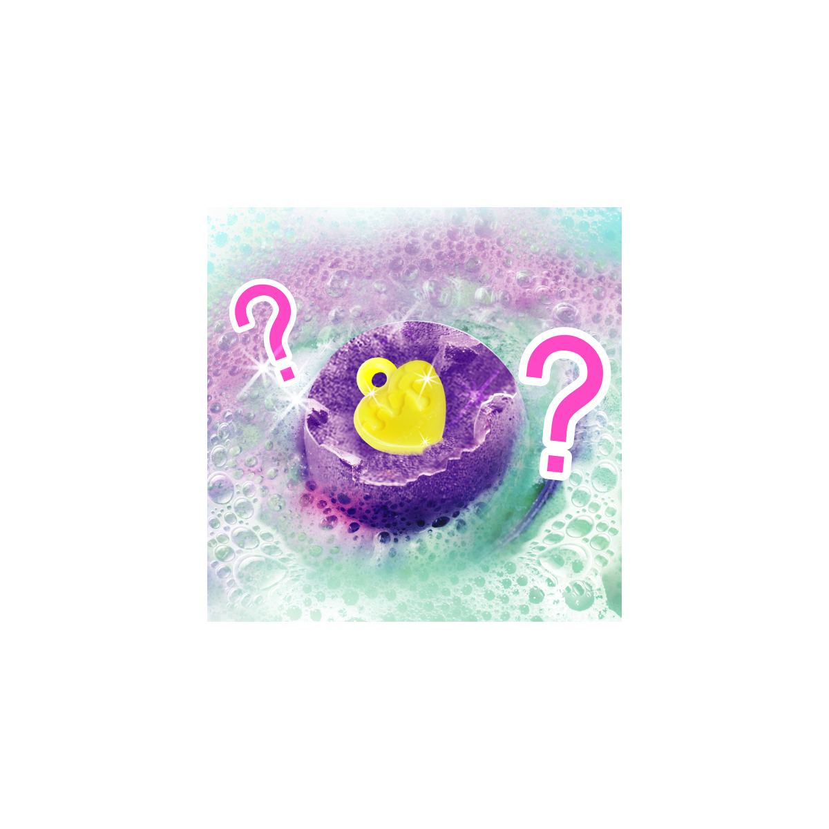 Cada mini bomba de baño se disuelve en el agua liberando colores y aromas sorprendentes. Pero la diversión no termina ahí: al final de cada bomba, los peques descubrirán un colgante sorpresa que podrán coleccionar. Esto convierte el baño en un juego emocionante y lleno de sorpresas, manteniendo la expectación hasta el último momento.