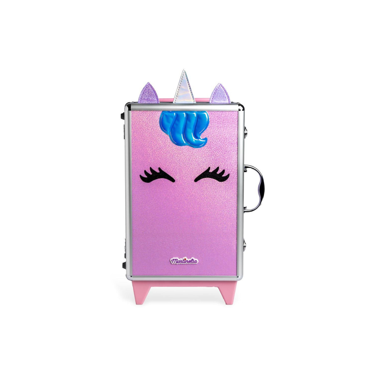 El Martinelia Little Unicorn Carry On es un maletín de maquillaje infantil con ruedas, perfecto para que niñas y niños a partir de 3 años disfruten de un set de belleza mágico, práctico y fácil de transportar. Su diseño encantador, lleno de detalles en tonos pastel y con ilustraciones de unicornios, lo convierte en un regalo espectacular que despierta ilusión y creatividad.