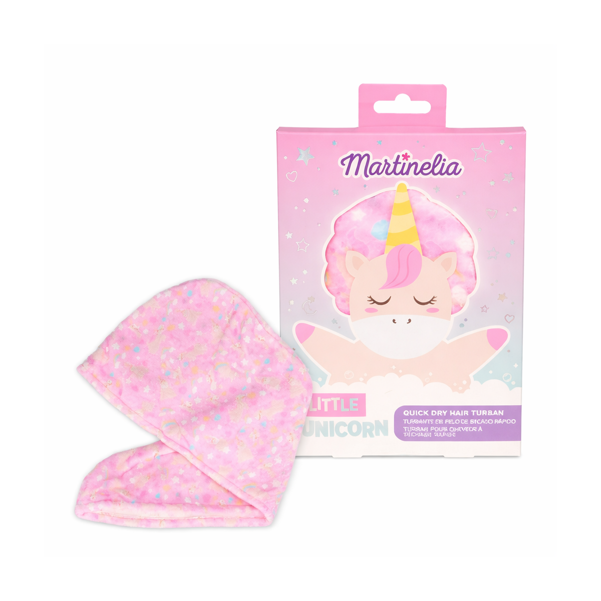 Con el estilo encantador y colorido de Martinelia, este turbante está pensado para que los más pequeños y pequeñas se sientan como en un auténtico spa en casa. Su uso es sencillo y cómodo, permitiendo que lo integren fácilmente en sus juegos mientras desarrollan su creatividad y disfrutan cuidándose de forma lúdica.