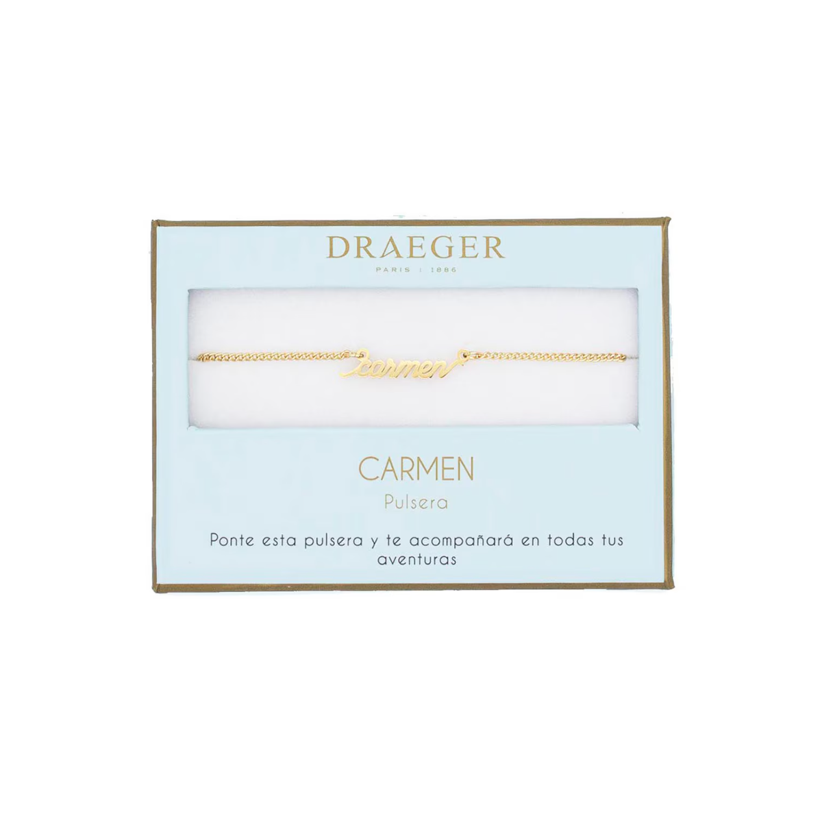 La Pulsera Nombre Carmen dorada de Draeger es una joya delicada y con mucha personalidad, perfecta para quienes llevan este nombre con orgullo o para sorprender a alguien especial. Su diseño sencillo y elegante la convierte en un accesorio ideal para lucir cada día o regalar en una ocasión significativa.