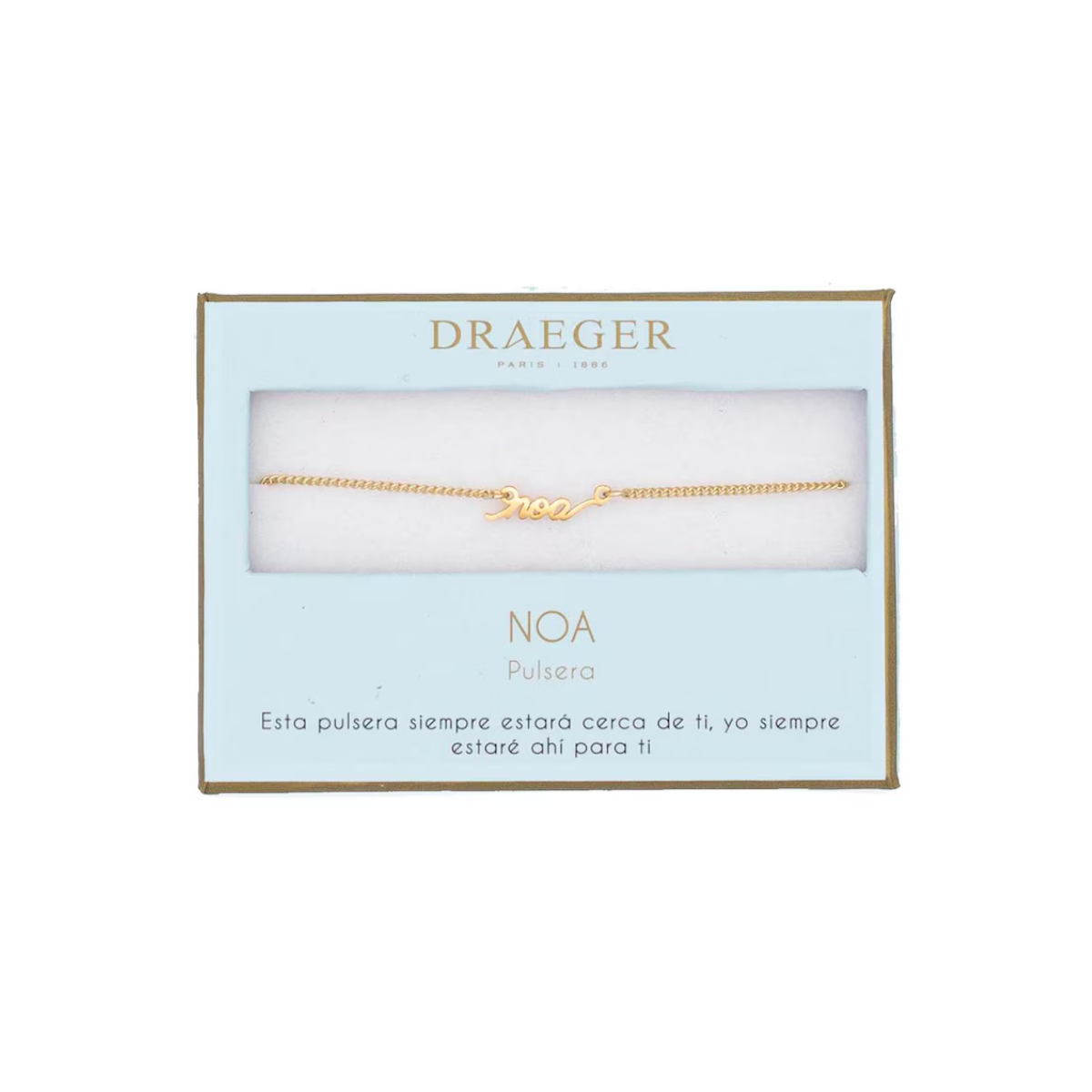 La Pulsera Nombre Noa dorada de Draeger es una joya minimalista y con un aire fresco que encaja con cualquier estilo. Pensada para quienes se identifican con este nombre corto, moderno y lleno de significado, es el tipo de detalle que se convierte en parte de ti desde el primer día. Ligera, sencilla y con mucha personalidad.