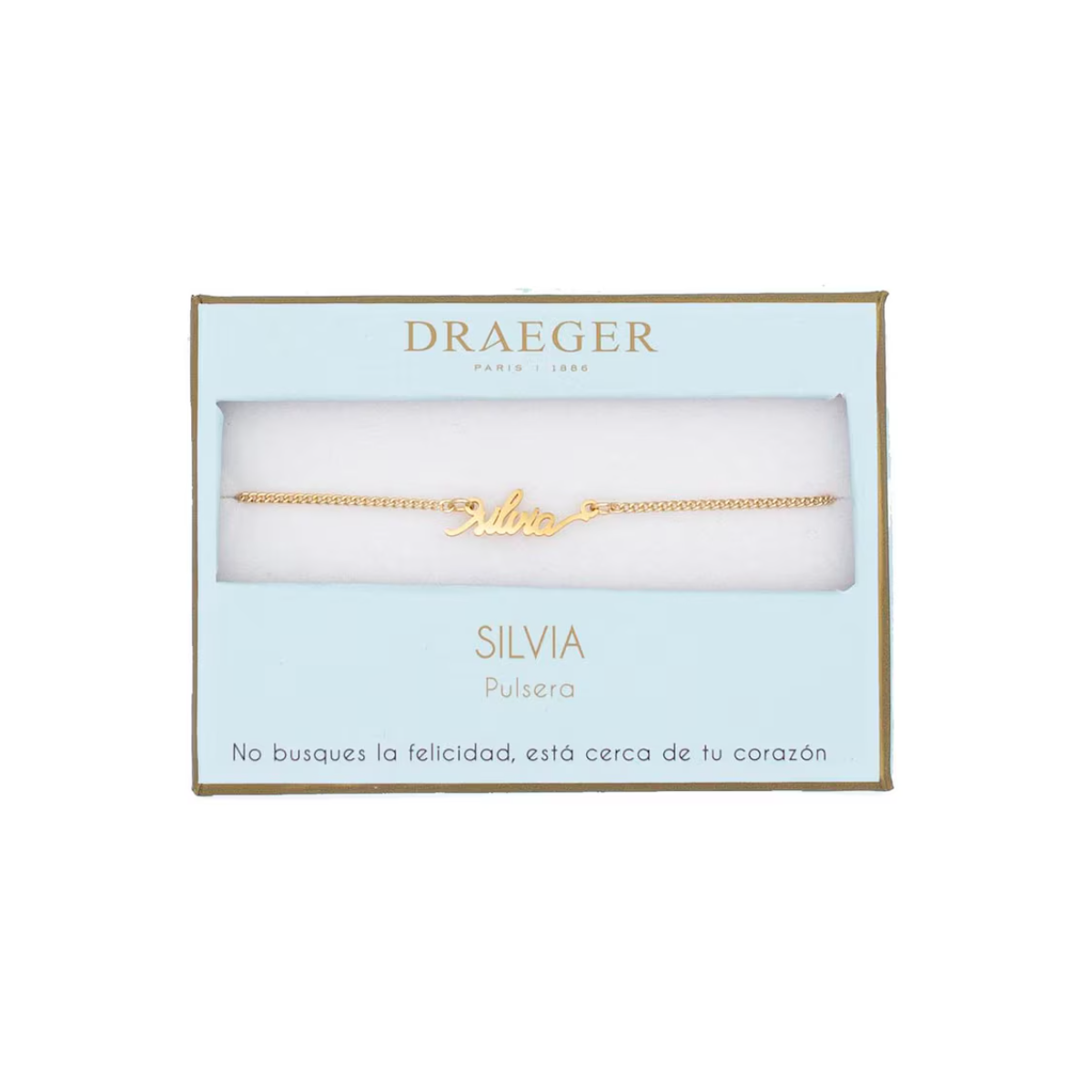 La Pulsera Nombre Silvia dorada de Draeger es una pieza elegante con un toque de luz y sofisticación. Diseñada para realzar un nombre lleno de carácter y dulzura, esta joya es ideal para quienes buscan un accesorio con significado, bonito por fuera y especial por lo que representa.
