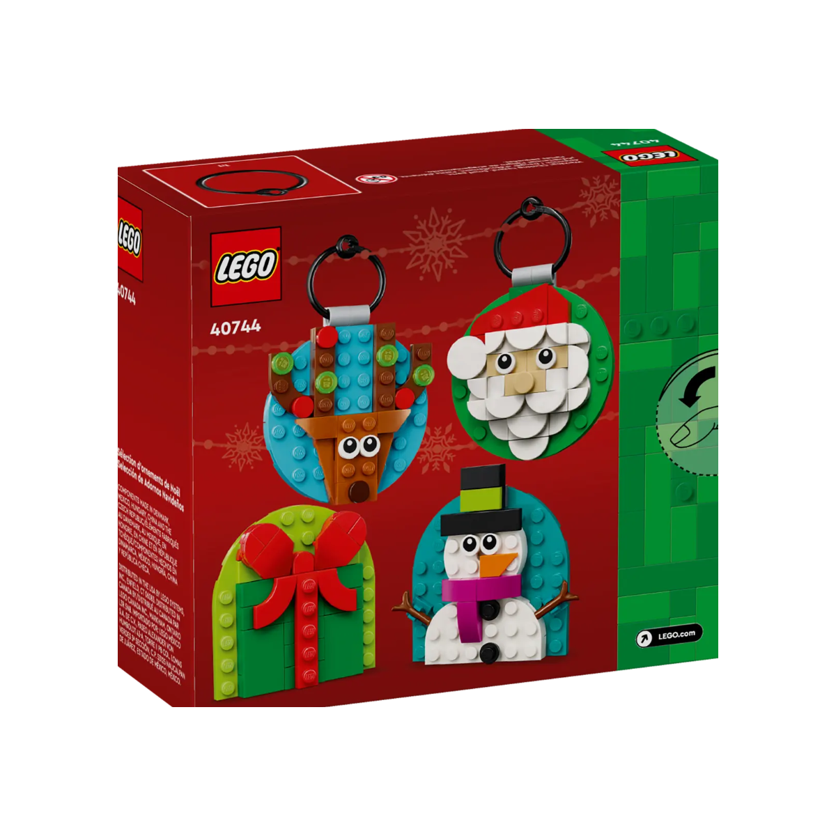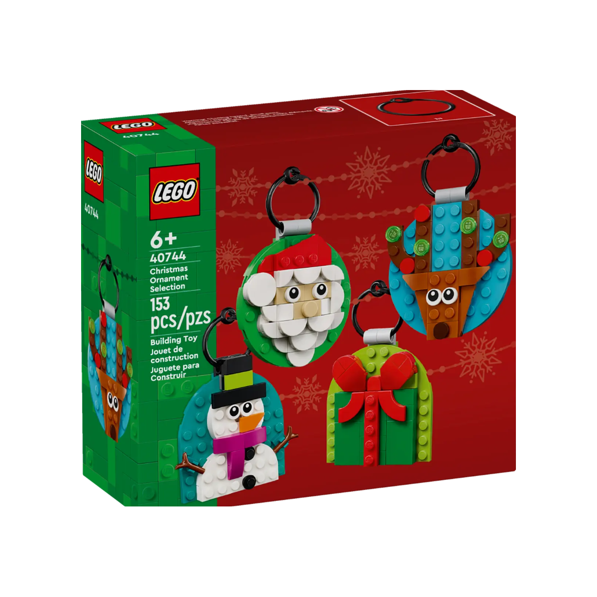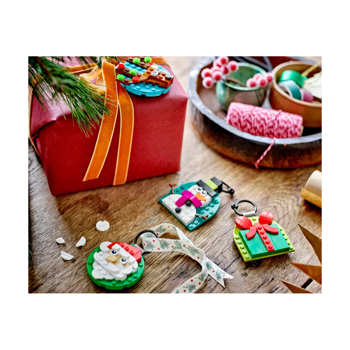 Descubre el LEGO Adornos Navideños, con 4 adornos colgantes navideños: regalo, Papá Noel, muñeco de nieve y reno, listos para colgar o exponer.