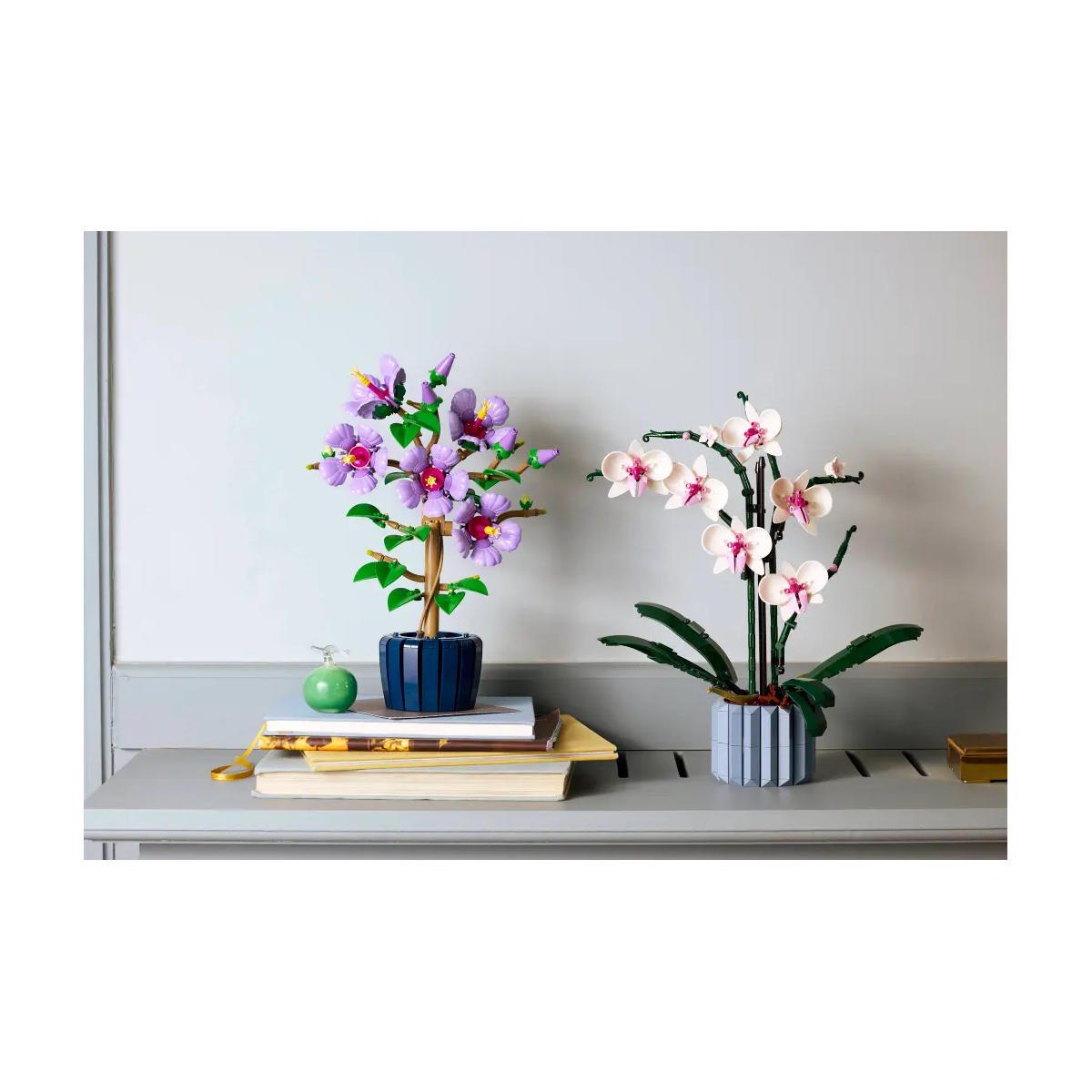 Descubre el LEGO Botanicals Hibisco; para construir una planta decorativa de hibisco lavanda-rosa, ideal para adultos y amantes del diseño floral.