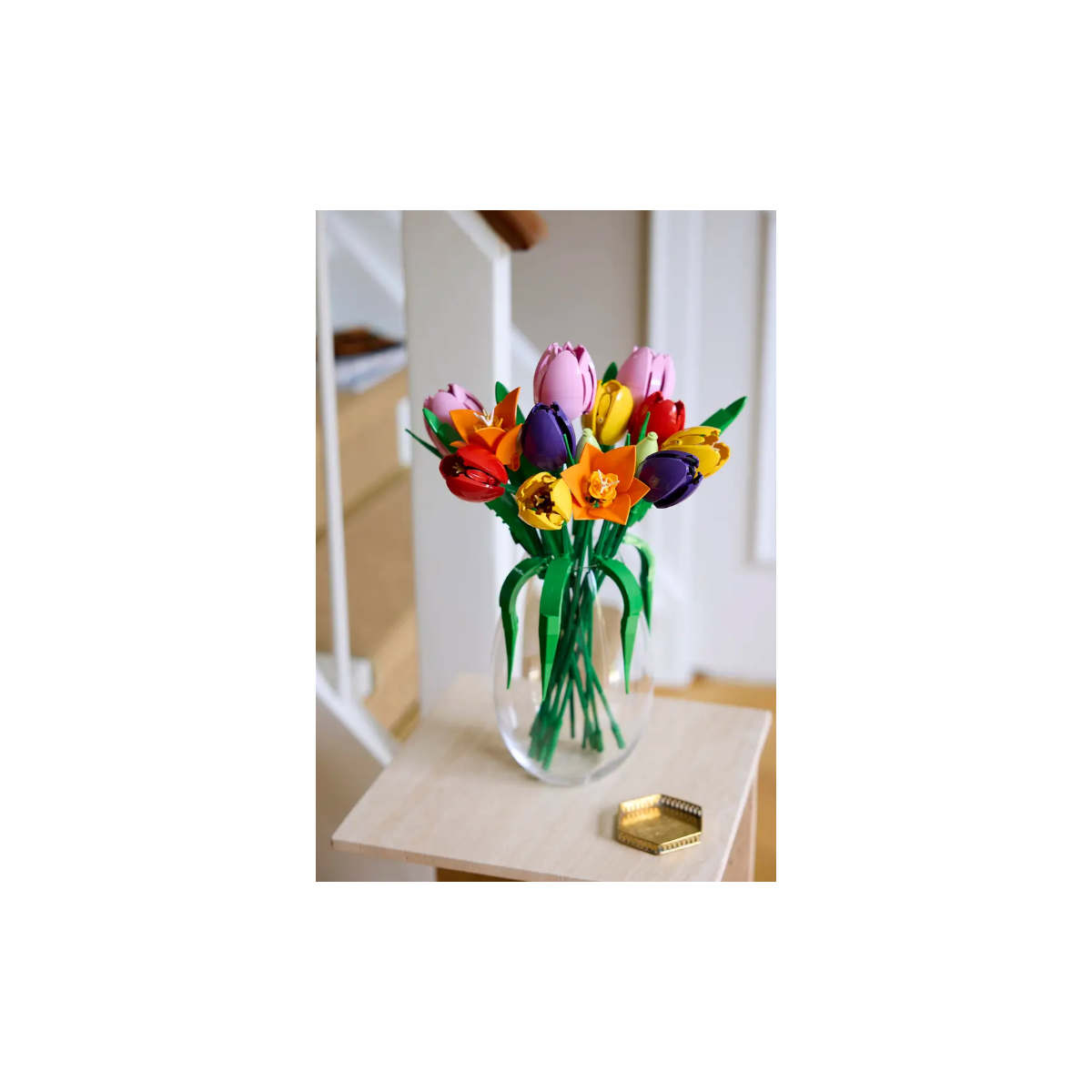 Una vez terminado, el LEGO Botanicals Ramo De Tulipanes se convierte en un elemento decorativo versátil. Puede colocarse solo o combinarse con otros sets florales LEGO para crear arreglos personalizados. Es también una alternativa muy original para regalar en fechas especiales, ya que mantiene su aspecto con el paso del tiempo y no necesita cuidados.