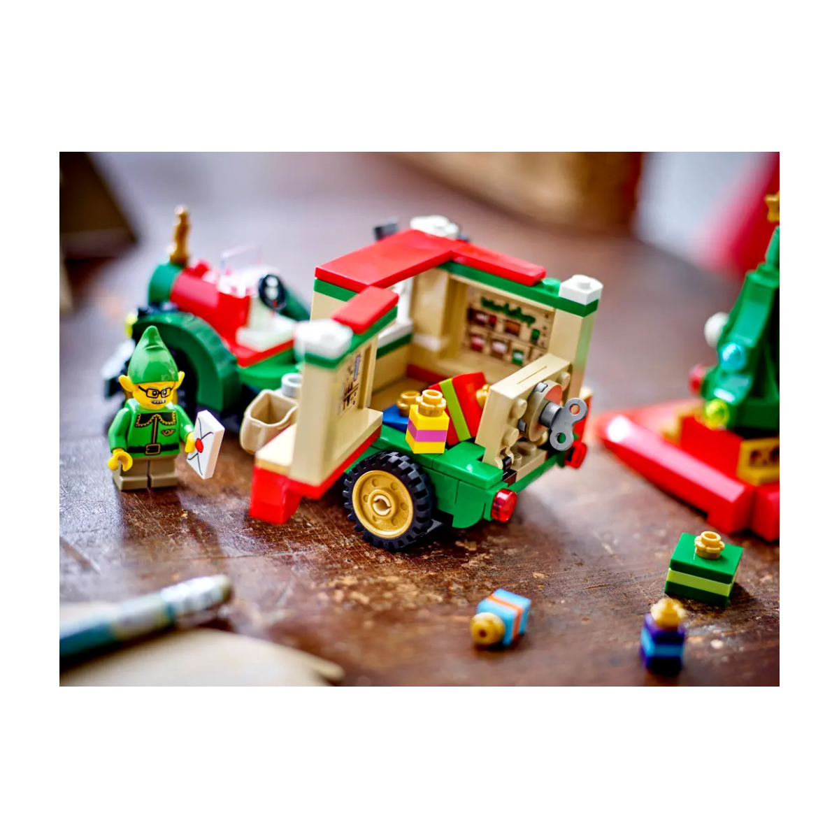- Figuras incluidas: Minifigura de un elfo que puedes colocar en el asiento del conductor del camión de Papá Noel.