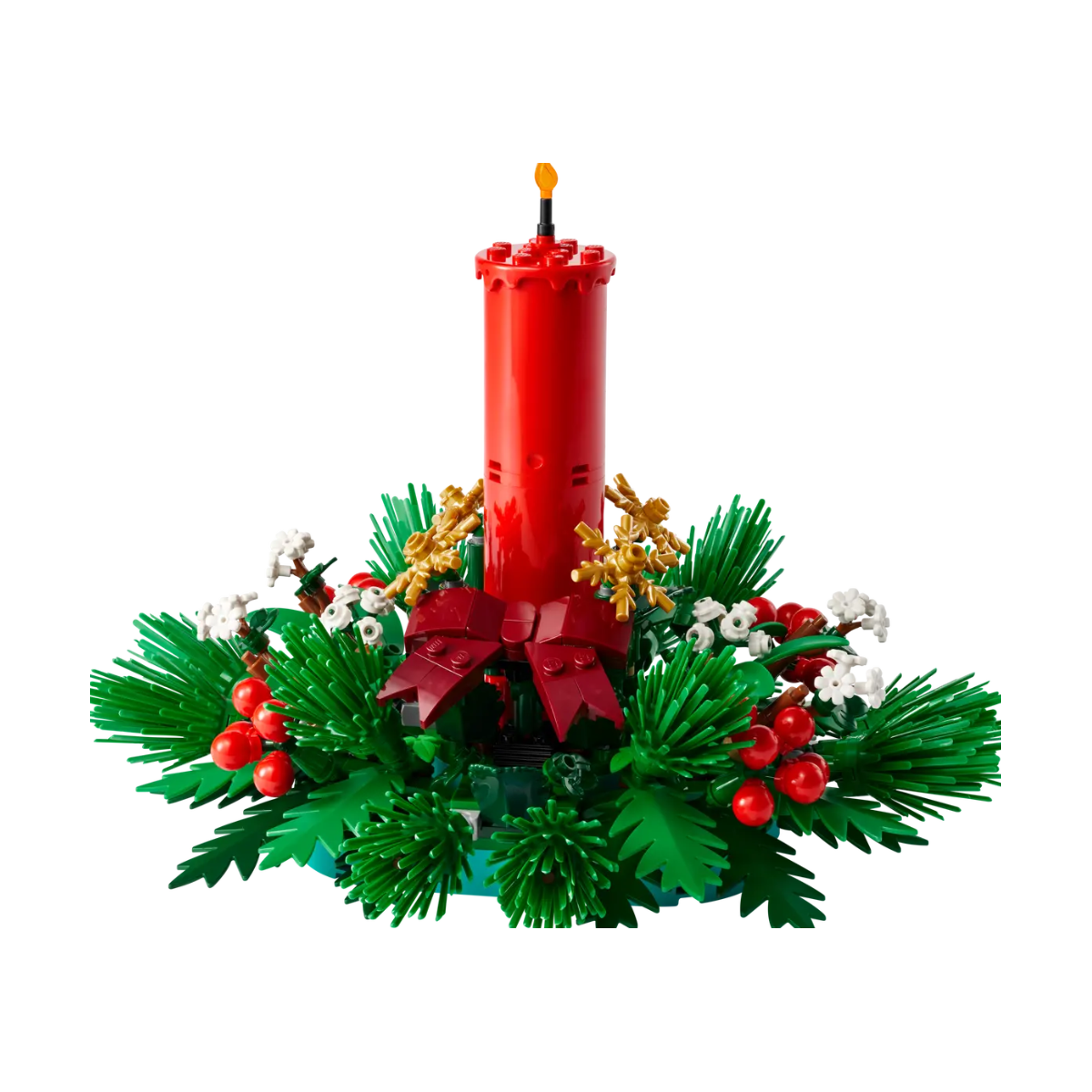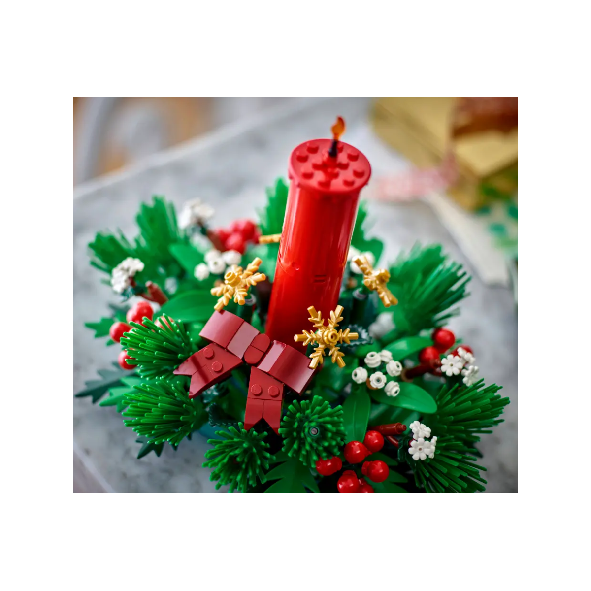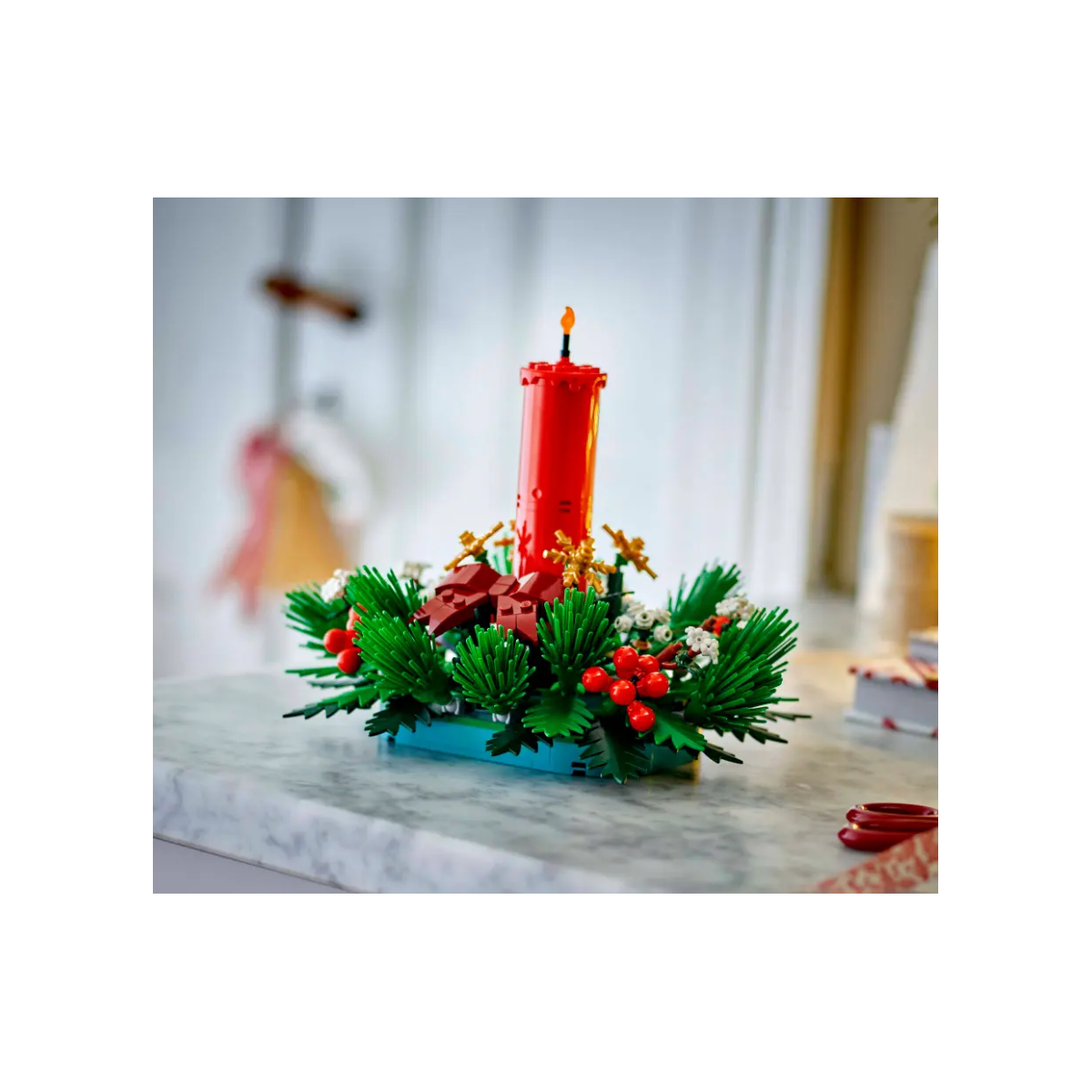 Descubre el LEGO Centro De Mesa Navideño, con 433 piezas para montar una vela festiva con bayas rojas y estrellas doradas, ideal para decorar la mesa navideña con estilo y creatividad.