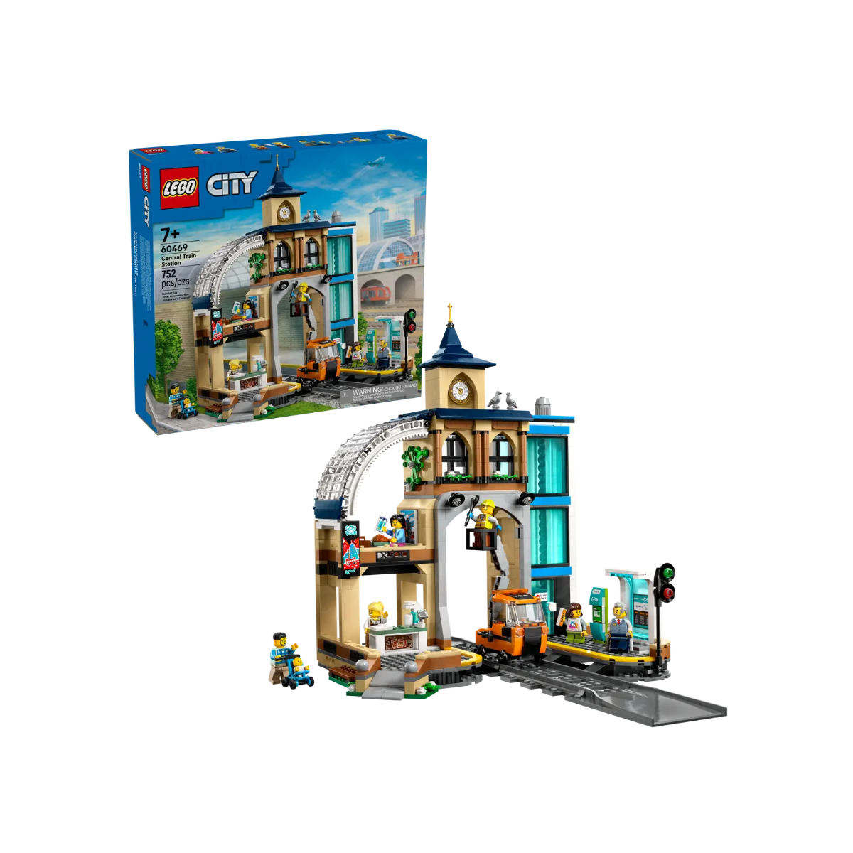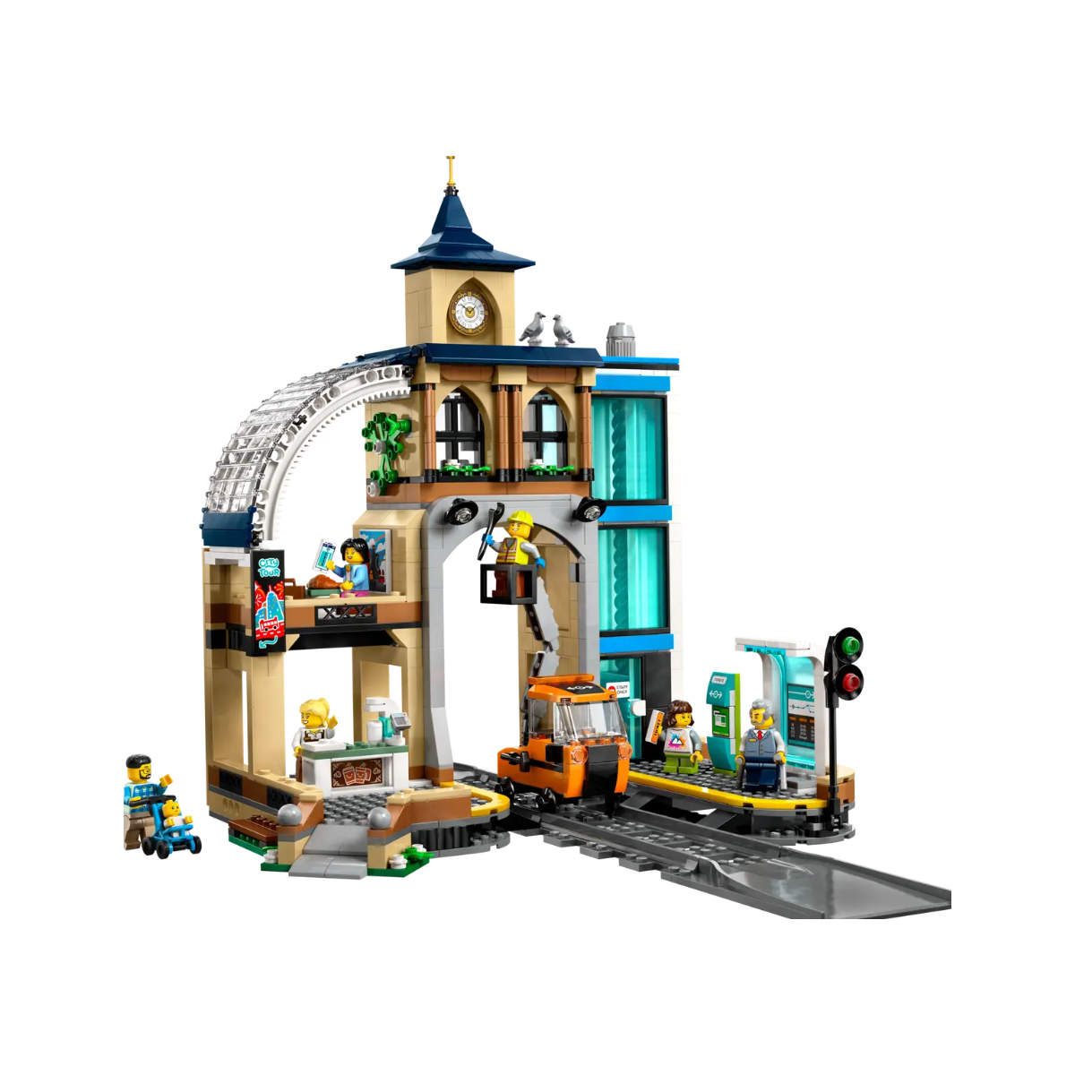 Descubre el LEGO City Estación Central De Ferrocarril; un set lleno de movimiento, detalles urbanos y posibilidades infinitas para imaginar historias sobre raíles con personajes y vehículos únicos.