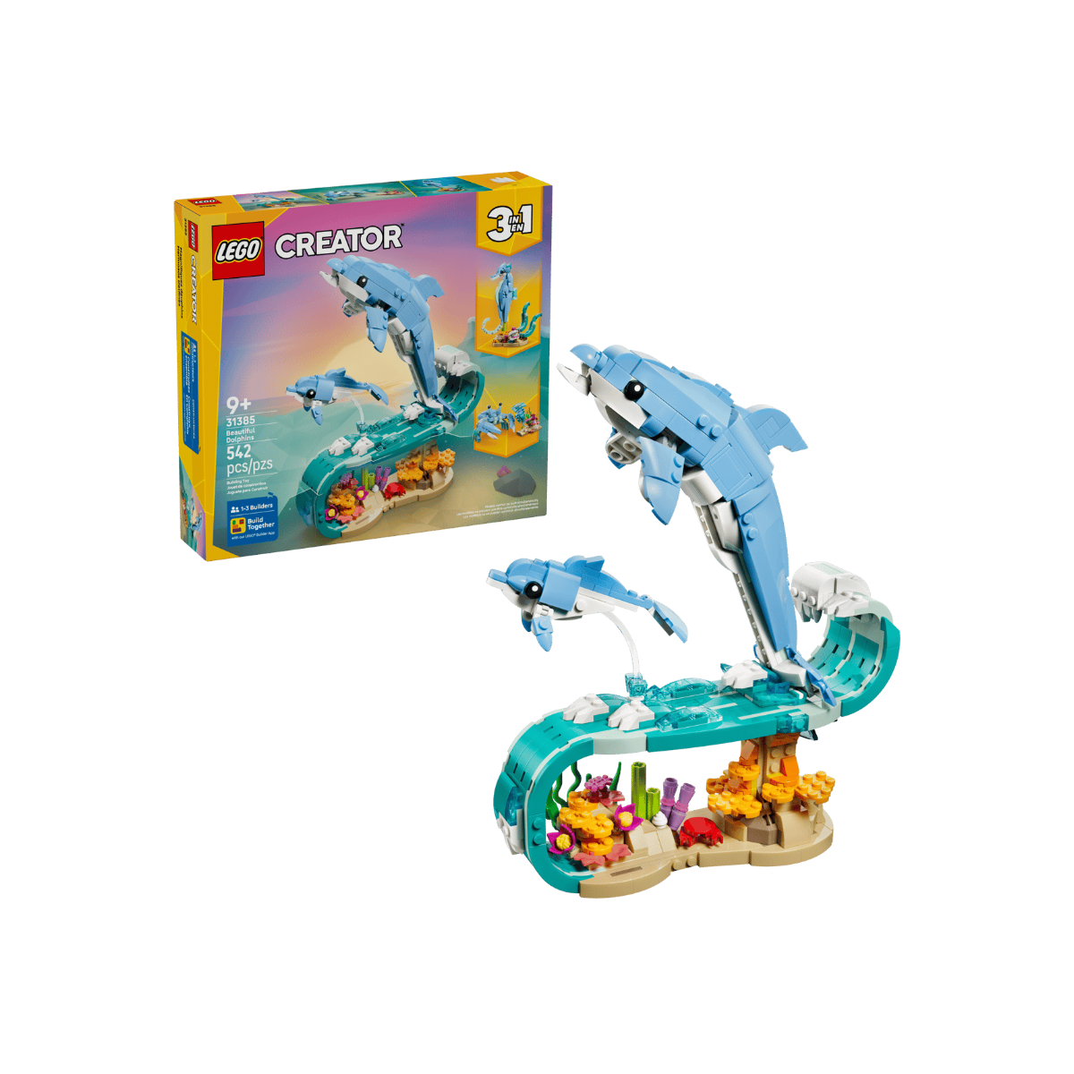 El LEGO Creator Animales Marinos: Hermosos Delfines 31385 captura la armonía y el movimiento del océano a través de una escena protagonizada por delfines. Este set está pensado para quienes disfrutan de modelos inspirados en la naturaleza, donde la estética y la sensación de dinamismo tienen tanto peso como el propio montaje.