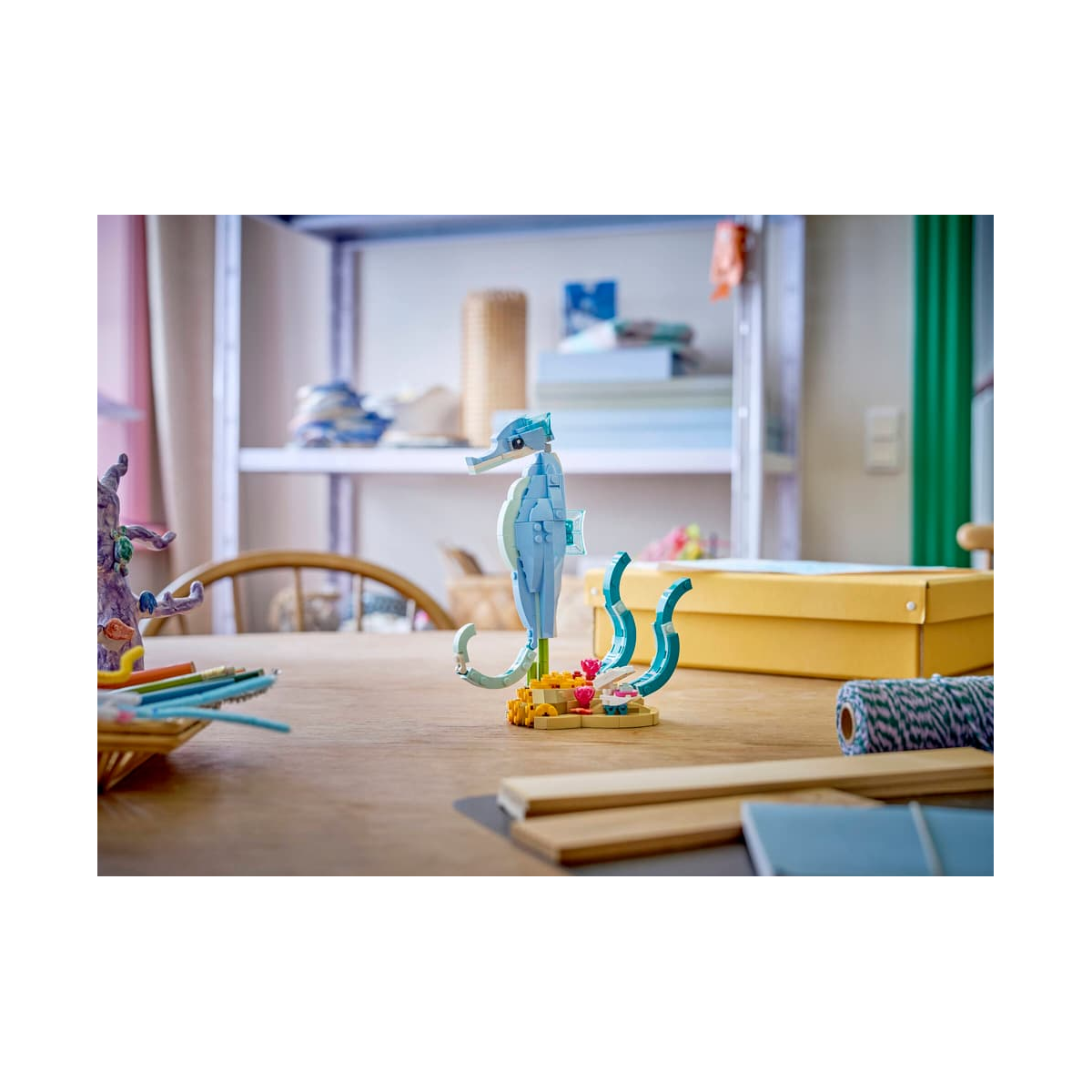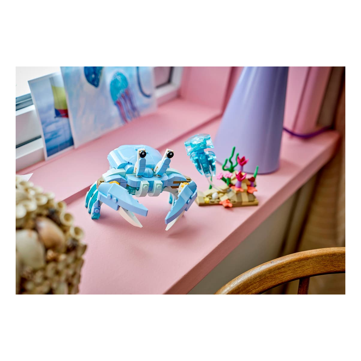 Una vez terminado, el LEGO Creator Animales Marinos: Hermosos Delfines funciona como elemento decorativo con fuerte presencia visual. Encaja especialmente bien en estanterías, escritorios o espacios donde se busque un detalle relacionado con el mar y la vida animal. También es una excelente opción como regalo para amantes del océano y de los sets LEGO con enfoque más artístico.