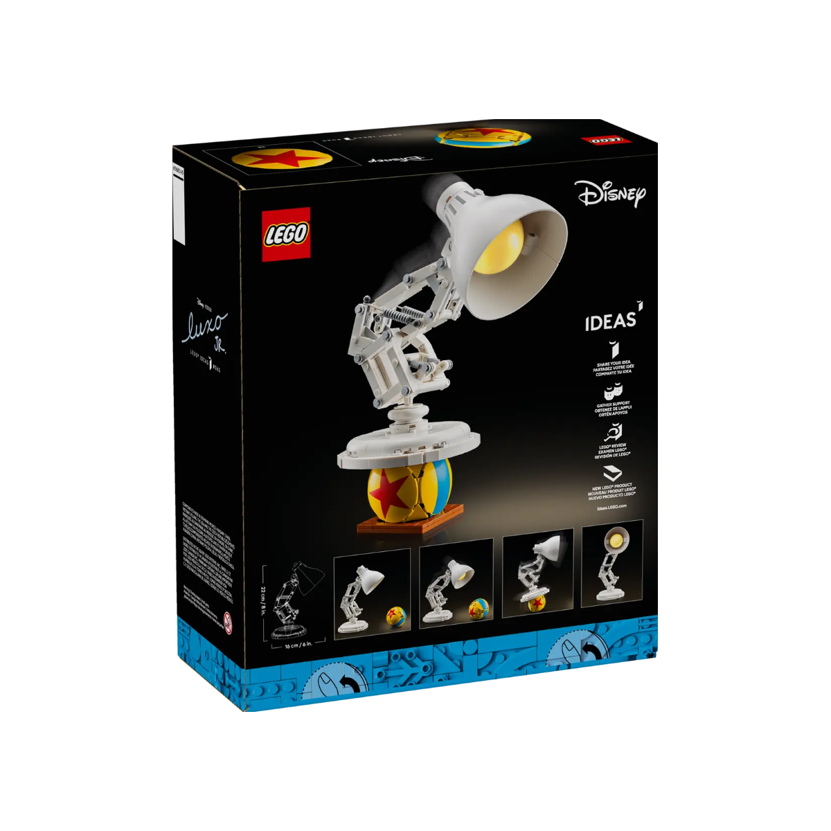 Aunque no ilumina realmente, su diseño funcional y minimalista evoca toda la esencia de la animación con bloques. Este set LEGO Disney Pixar Luxo Jr forma parte de la línea LEGO Disney, lo que garantiza un diseño cuidado y aprobado por la comunidad de fans de LEGO y Pixar.
