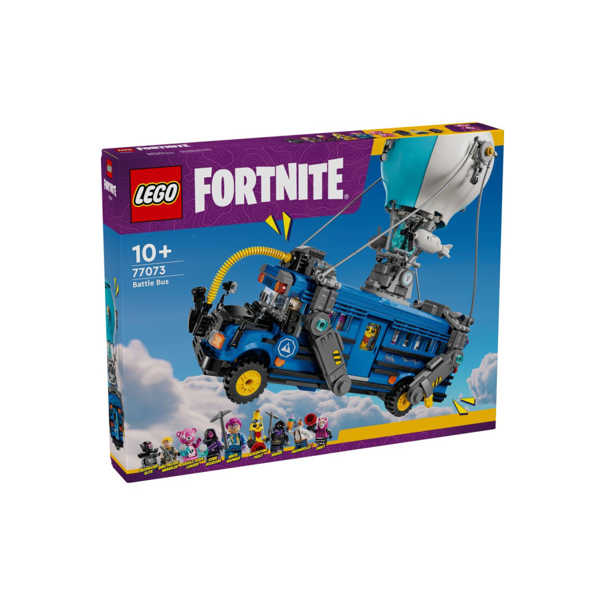 El Autobús de Batalla de Fortnite destaca por su diseño detallado, con una estructura fiel al videojuego, incluyendo la enorme globoesfera azul en la parte superior, las ruedas móviles y una cabina con espacio para las minifiguras. El set incluye personajes icónicos de Fortnite para que los jugadores puedan recrear sus estrategias y enfrentarse en épicas partidas al estilo battle royale.