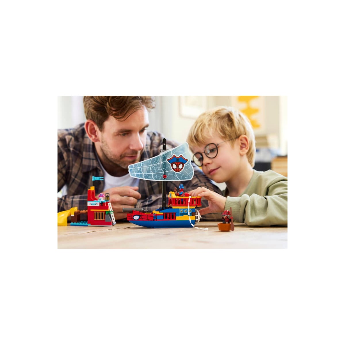 La diversión no termina al construirlo: el barco pirata del Equipo Spidey incorpora un cañón, mientras que Spider Island cuenta con un tobogán y un lanzador de discos. El Duende Verde tiene su propio barco con cañones, y también se incluye un bote adicional. La cuerda arácnida de Spidey permite “pescar” objetos como un pez, un cofre del tesoro o incluso el barco del villano. Todo está pensado para fomentar el juego imaginativo y las historias llenas de acción.