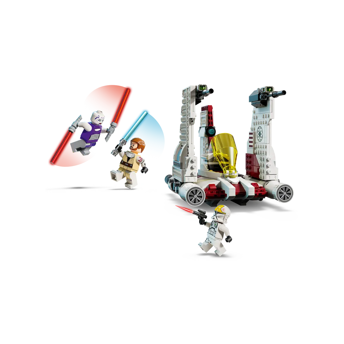 Este set de LEGO incluye 567 piezas y trae tres minifiguras exclusivas: General Obi‑Wan Kenobi, Asajj Ventress con sus dos sables rojos curvados, y un Clone Pilot, cada uno con accesorios detallados. La cabina abatible permite colocar las figuras en sus puestos de mando, mientras que las alas plegables se ajustan fácilmente y las rejillas centrales sirven también como asa para hacer “vuelo” manual. Perfecto para recrear duelos épicos y maniobras de estrellas.