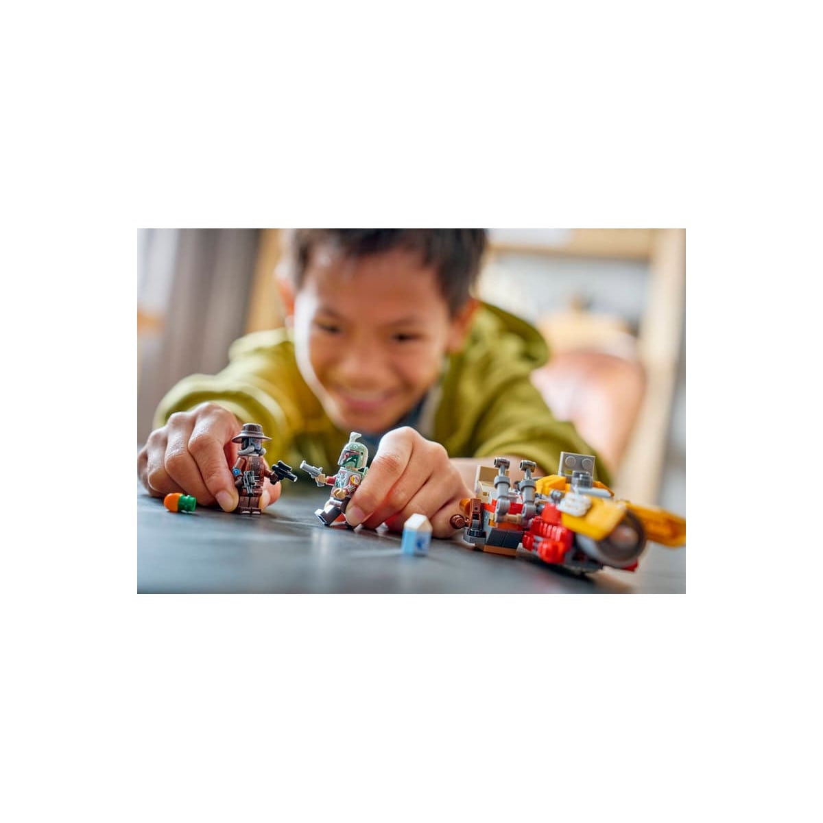 Incluye las minifiguras LEGO de Cobb Vanth, equipada también con mochila propulsora, y Cad Bane, que viene preparado para el duelo con sus 2 pistolas bláster. Con 207 piezas, es un set equilibrado que combina construcción entretenida y muchas posibilidades de juego.