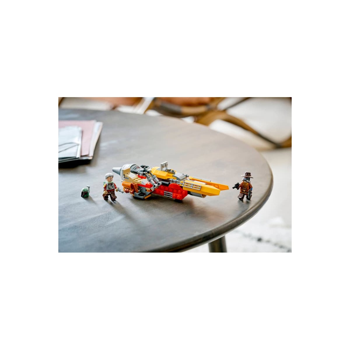 El modelo reproduce el inconfundible speeder de Cobb Vanth con gran nivel de detalle. Cuenta con asiento para la minifigura, conector para su pistola y un compartimento oculto donde guardar accesorios tan especiales como el casco de Boba Fett o un cartón de leche de Bantha. Pequeños guiños que harán sonreír a cualquier fan de la saga.