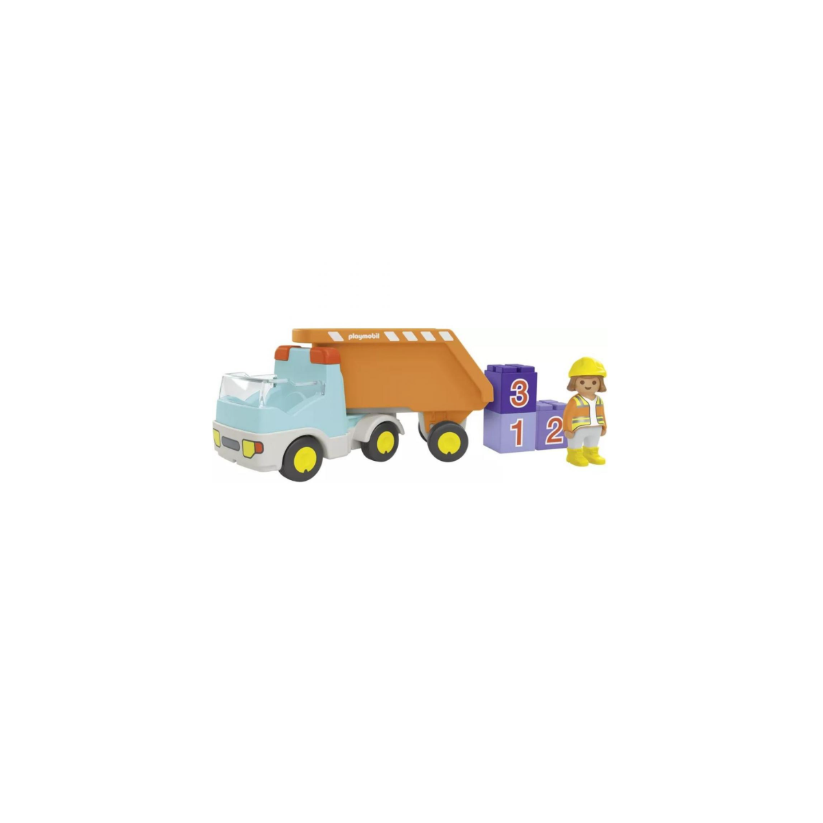 Incluye: Un camión de construcción con volquete funcional, una figura Playmobil y accesorios temáticos.