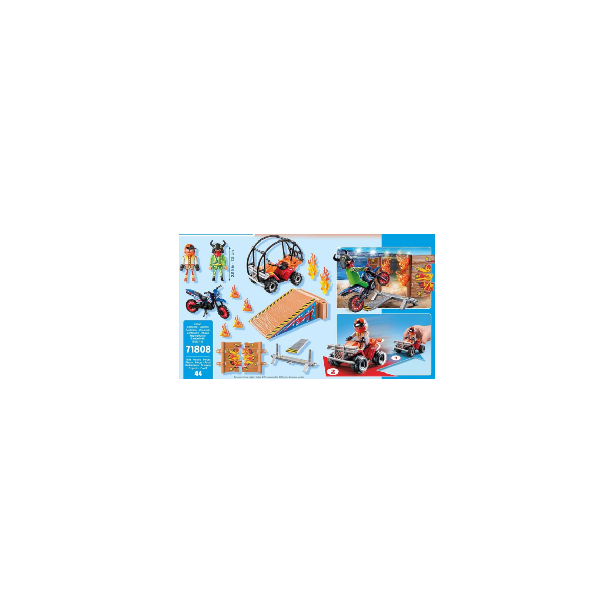 - Incluye 2 figuras de stunt (motorista y piloto de quad).