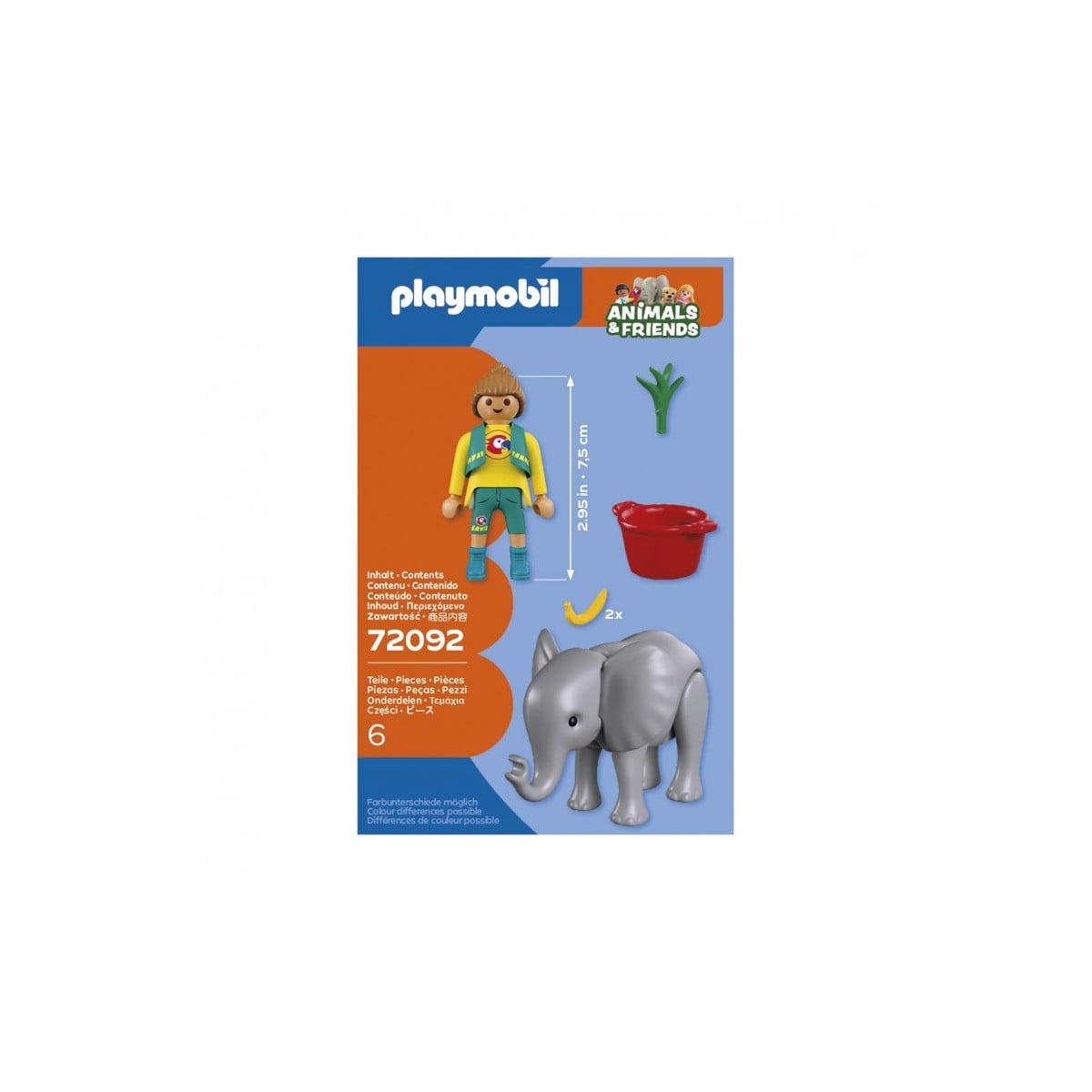 - Figuras incluidas en el set y accesorios: 1 figura Playmobil, 1 elefante y accesorios.