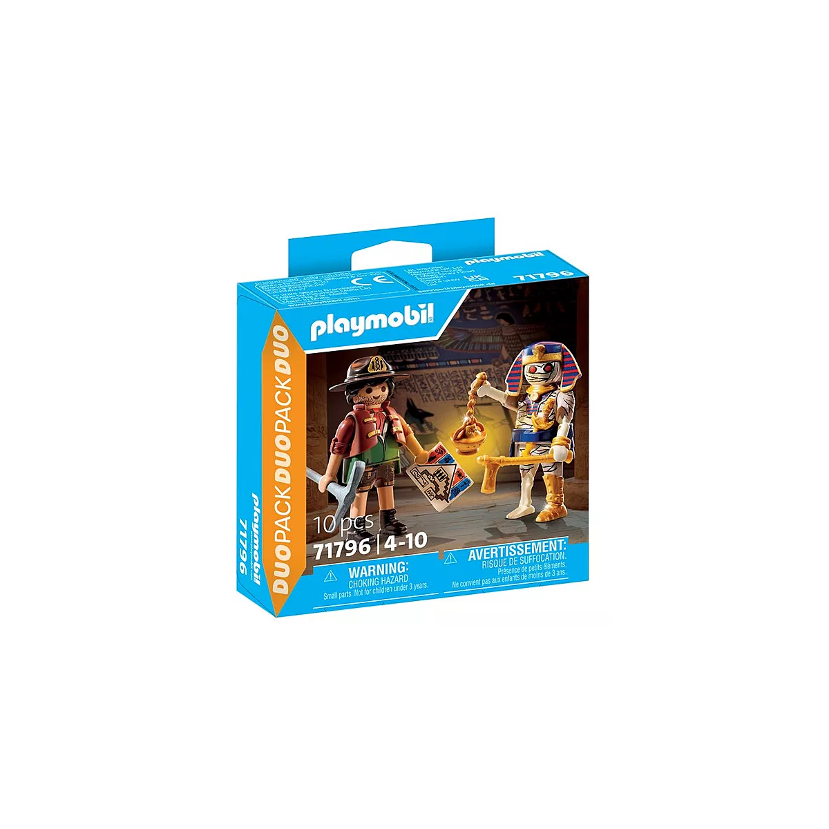 El protagonista de esta historia es un intrépido cazador de tesoros, equipado con todos los utensilios necesarios para explorar una tumba milenaria: pica, jeroglífico... Pero no está solo: una momia antigua se levanta entre las ruinas para proteger su tesoro, dando pie a escenas llenas de acción, misterio y emoción. Este tipo de juego simbólico estimula la creatividad de los más pequeños, que pueden imaginar desde excavaciones pacíficas hasta enfrentamientos épicos con guardianes del más allá.