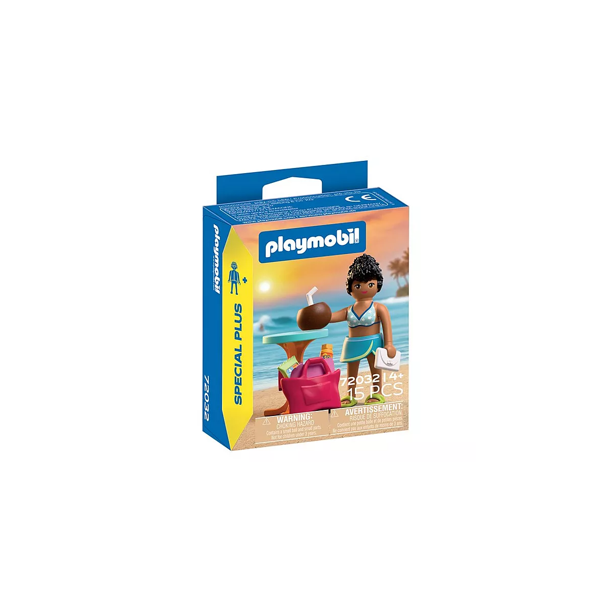 PLAYMOBIL Veraneante Special Plus (72032) con 15 piezas y accesorios de playa. Ideal para niños y niñas desde 4 años que disfrutan creando historias de verano llenas de diversión.