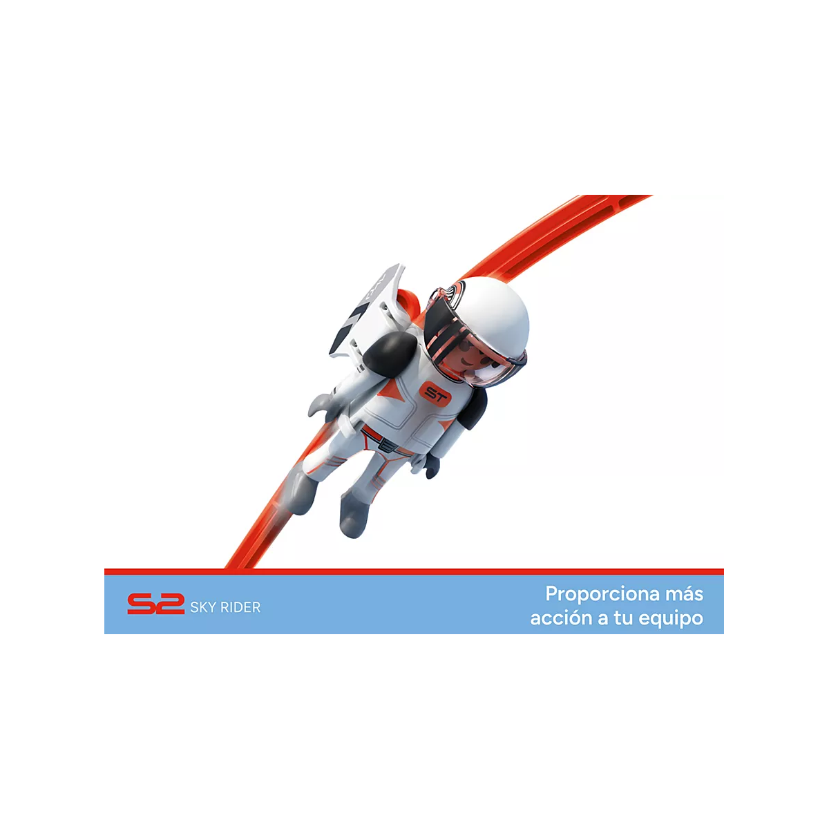 El Sky Rider de Playmobil es la figura esencial para lanzarse a la acción en el universo Sky Trails. Este personaje está preparado para enfrentarse a loopings vertiginosos, giros extremos y pistas con obstáculos, llevando cada recorrido al siguiente nivel. Es el compañero perfecto para quienes disfrutan construyendo pistas creativas, enfrentando retos y añadiendo emoción a cada juego.