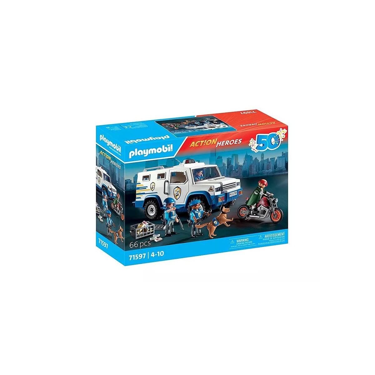 Vive emocionantes persecuciones policiales con el Transportador de Dinero Playmobil, un set lleno de acción y creatividad para niños a partir de 4 años.