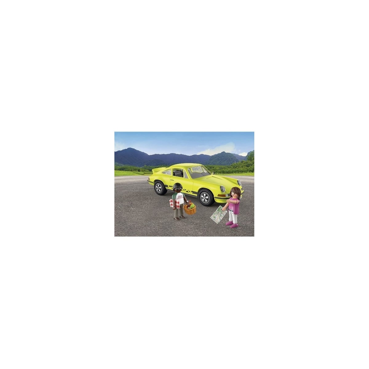 - El set incluye un Porsche 911 Carrera RS 2.7 amarillo con techo desmontable y maletero abatible, dos figuras PLAYMOBIL con cesta de pícnic, manta, mapa de carreteras y otros accesorios.