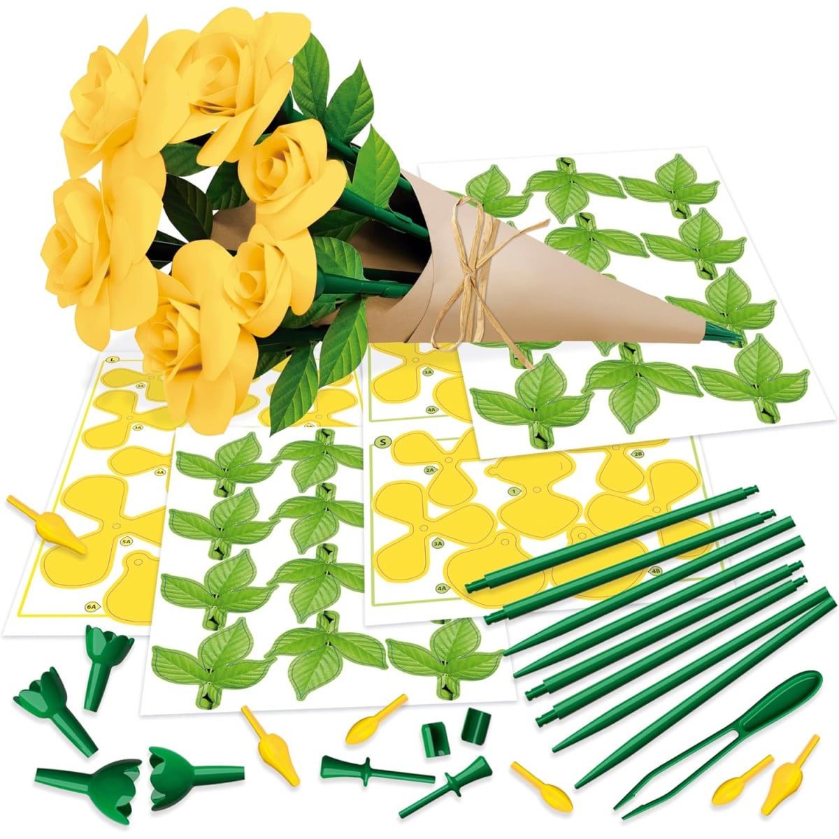 - Incluye todo lo necesario para crear 6 rosas amarillas decorativas