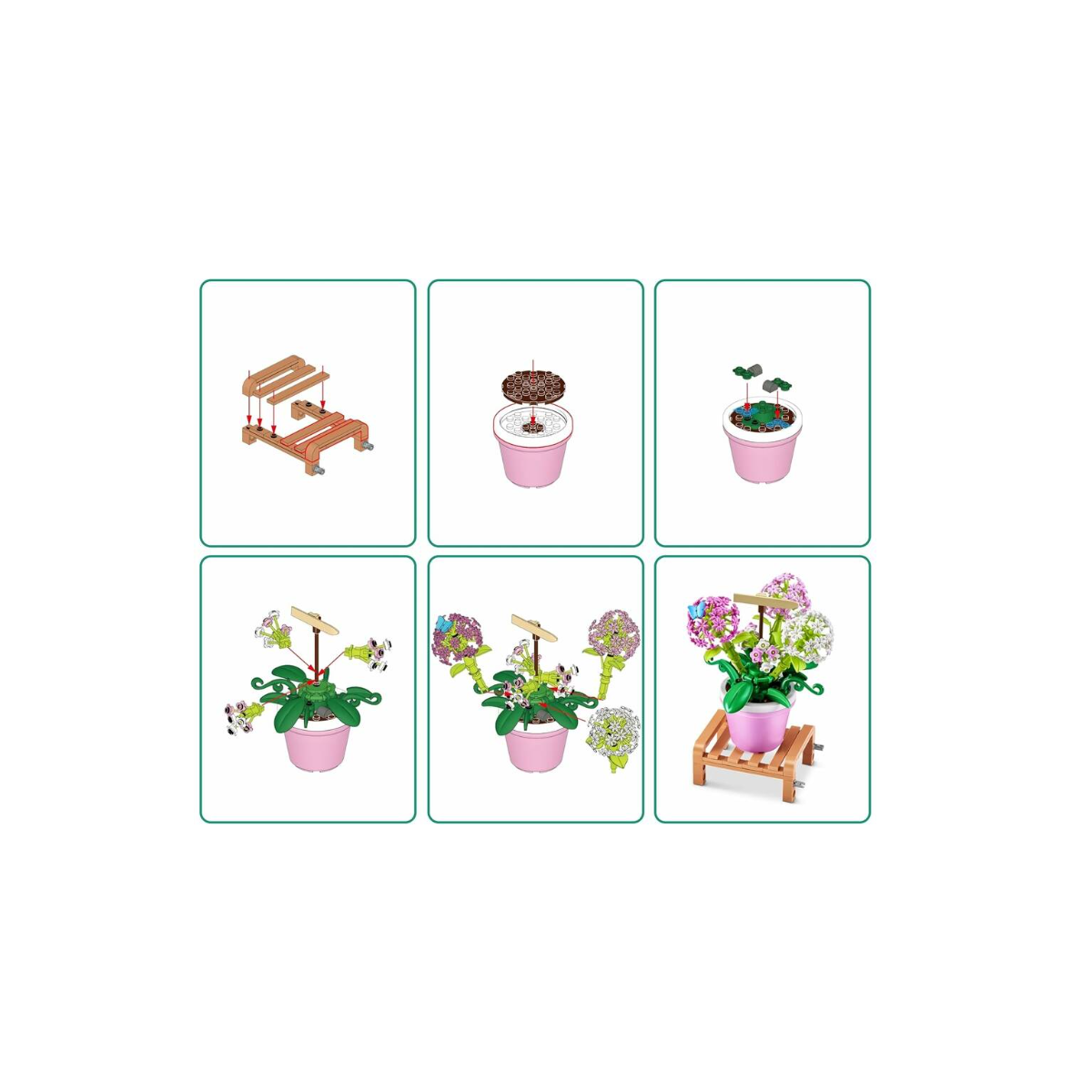 Cada bola incluye todas las piezas necesarias para montar una planta decorativa de estilo Garden. No podrás saber cuál de los modelos toca hasta abrirla, lo que convierte cada bola en un juego emocionante y coleccionable. Esta colección está pensada para estimular la motricidad fina, la concentración y la creatividad, con piezas pequeñas que invitan a montar con precisión y estilo.