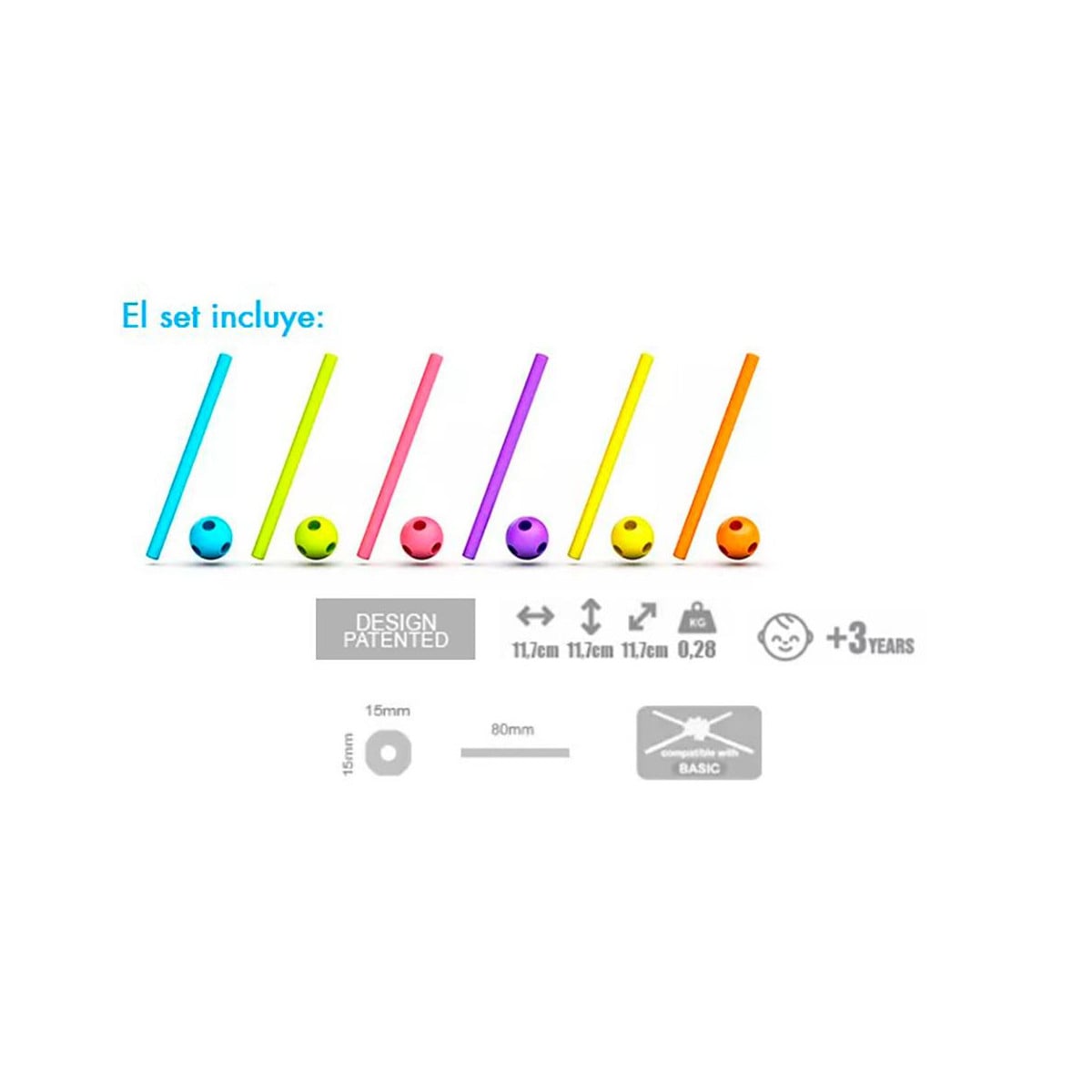 - Cantidad de piezas: 300 palillos y conectores flexibles y coloridos.