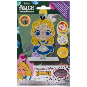Una figura decorativa de Alicia para completar con cristales brillantes, ideal para disfrutar de una actividad creativa y conseguir un resultado lleno de detalle y color.