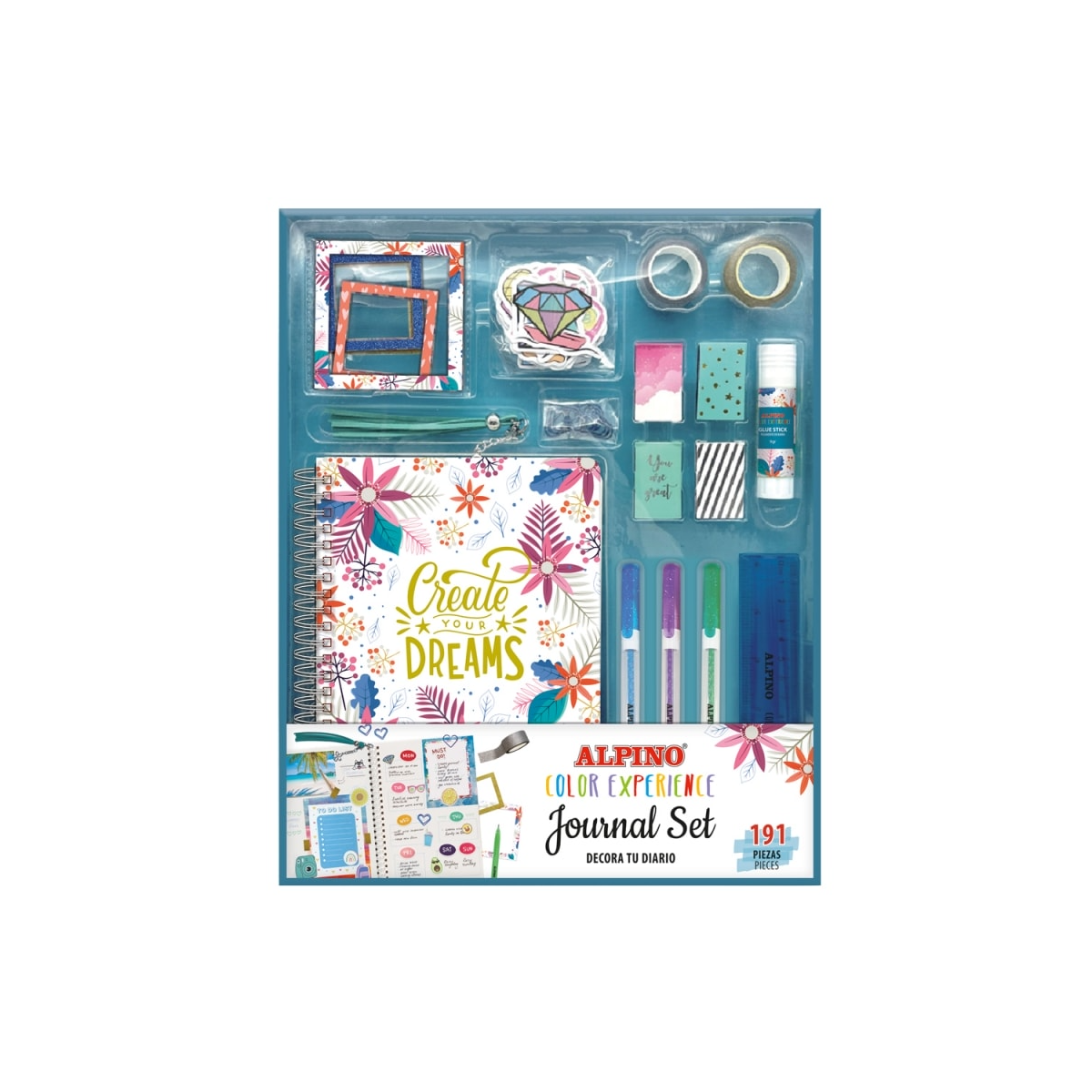 El Alpino Set Journal Color Experience es el compañero ideal para que niños y niñas a partir de 8 años desarrollen su creatividad y habilidades de organización. Este completo set de 193 piezas permite personalizar diarios, agendas o cuadernos, fomentando la expresión artística y la planificación de manera divertida y educativa.