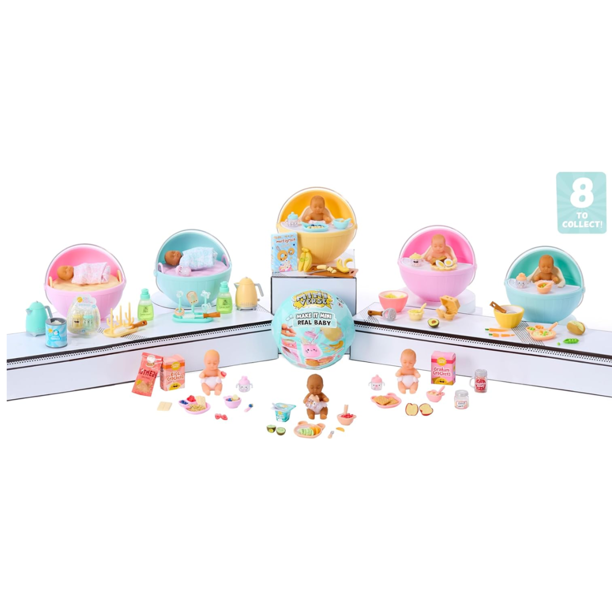 El universo Miniverse abre las puertas a la creatividad en miniatura. Cada Miniverse Make It Mini Real Baby esconde pequeños ingredientes, moldes y utensilios para preparar deliciosas réplicas de comidas o postres a escala. Los niños pueden combinar, montar y fijar sus propias creaciones, disfrutando del proceso paso a paso hasta obtener su mini plato terminado.
