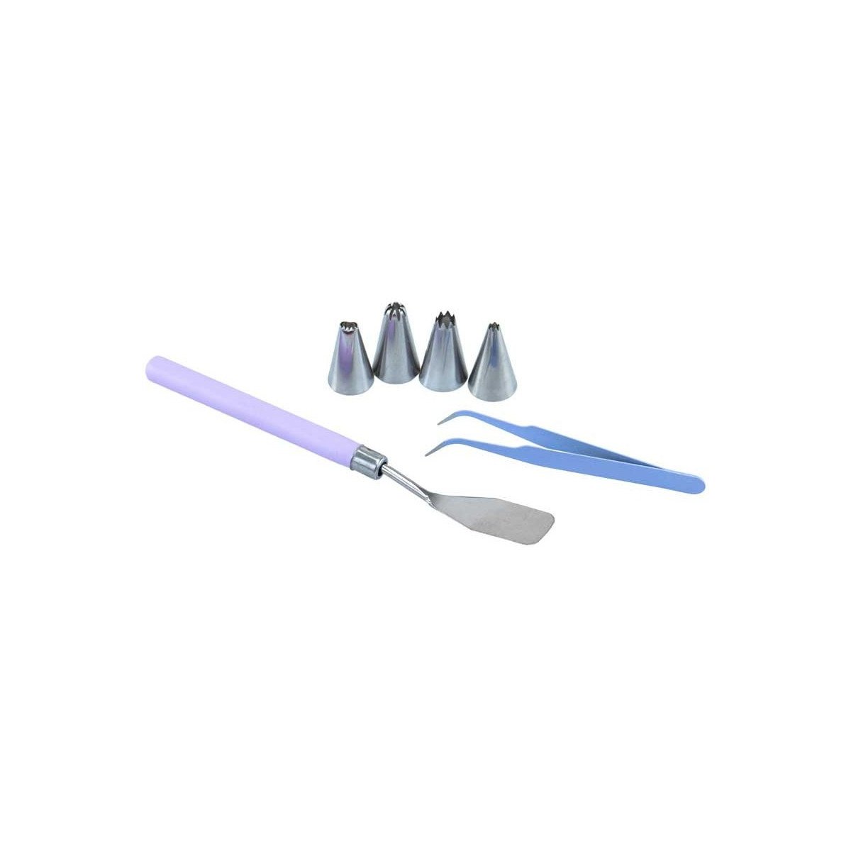 - Contiene 5 boquillas metálicas, espátula, pinzas y herramientas de diseño.