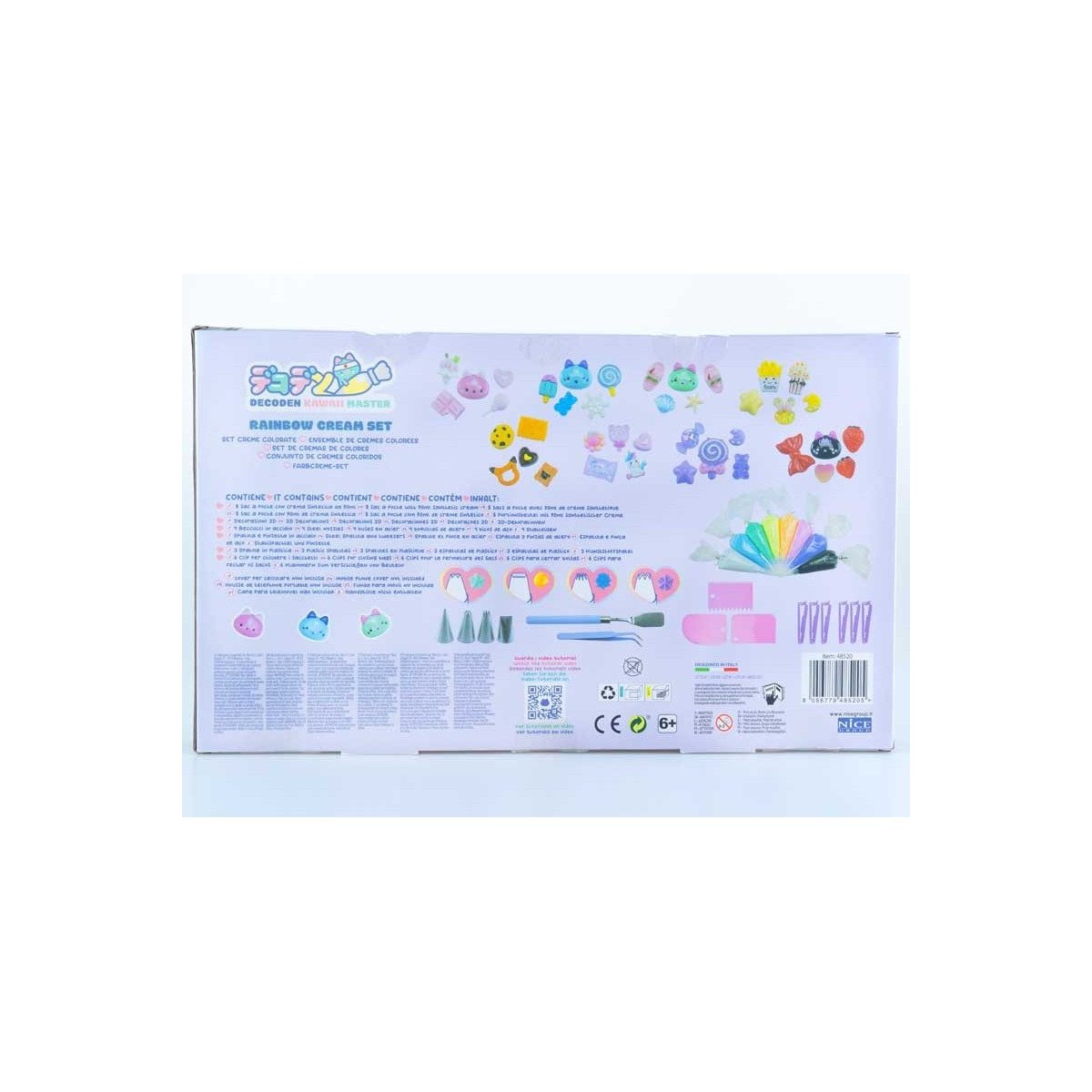 Crea diseños únicos con el set Decoden Rainbow Cream Set, lleno de colores y accesorios para decorar y dar rienda suelta a la imaginación infantil.