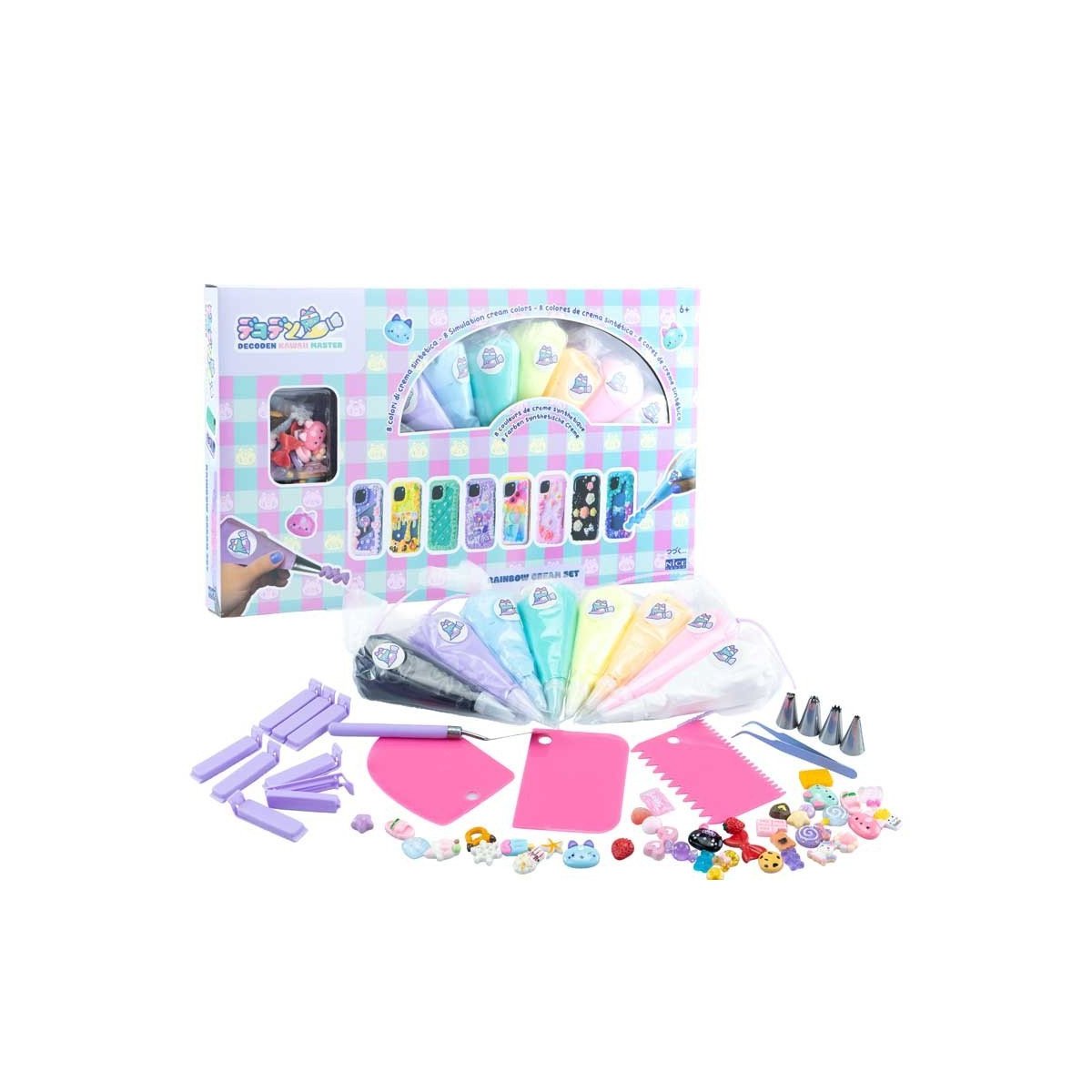 El Decoden Rainbow Cream Set es el kit perfecto para que niñas y niños desarrollen su creatividad mientras se divierten decorando con estilo. Inspirado en la moda japonesa kawaii, este completo set permite crear diseños únicos con cremas de colores, boquillas, espátulas y un sinfín de adornos con formas adorables.